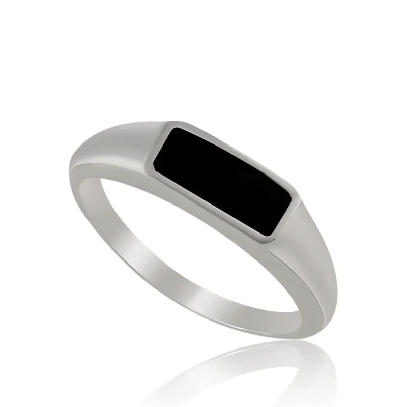 Hudson Silver Onyx Signet Ring ? Bold Geometric Detailing