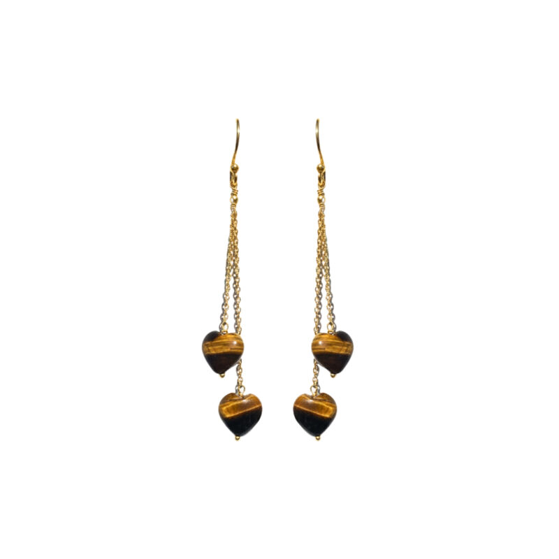 Tiger Eye Heart Dangle Earrings Gold Plated – Scorpio