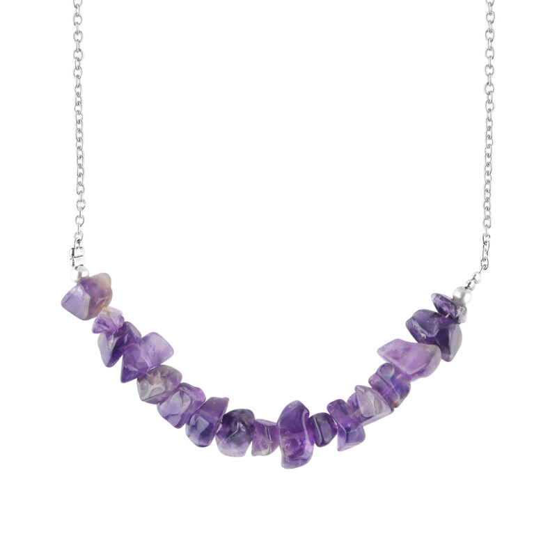 Amethyst Chip Bar Necklace Silver Plated February Birthstone