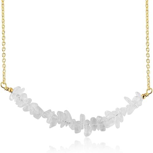 Clear Quartz Chip Bar Necklace Gold Plated April Birthstone
