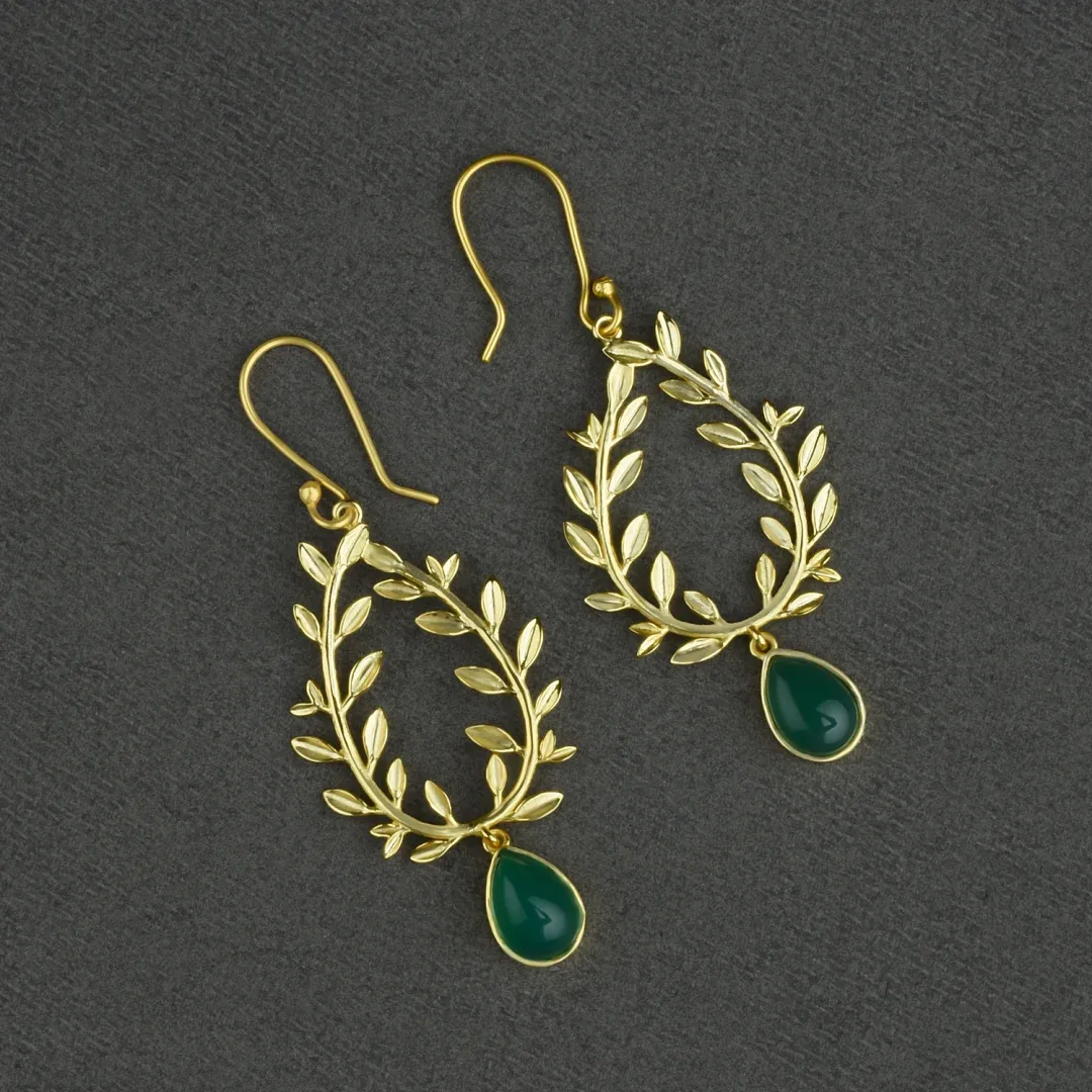 Gold-Plated Green Onyx Earrings: A Touch of Elegance