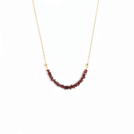 Garnet Chip Bead Bar Necklace 18K Gold Plated January