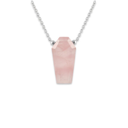 Rose Quartz Coffin Pendant Necklace Silver