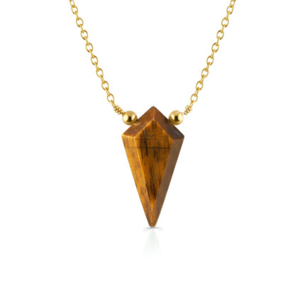 Tiger Eye Crystal Point Pendant Gold Plated Chain Necklace