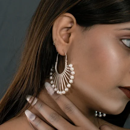 Stylish Silver Shell Pearl Earrings