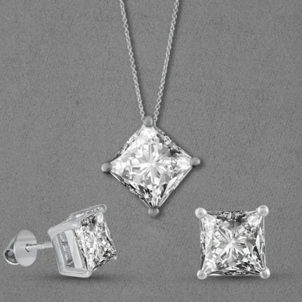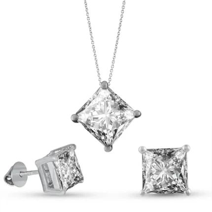 Princess Solitaire American Diamond Silver Jewelry Set