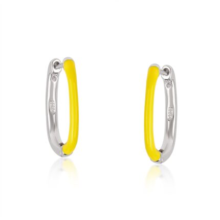 925 Sterling Silver Hoop Earrings with Yellow Enamel Accents