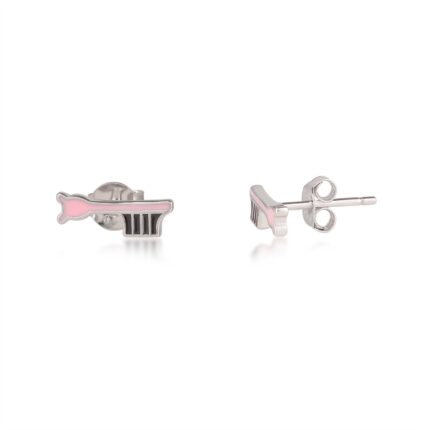 925 Sterling Brush Stud Earrings with Pink Enamel, Small