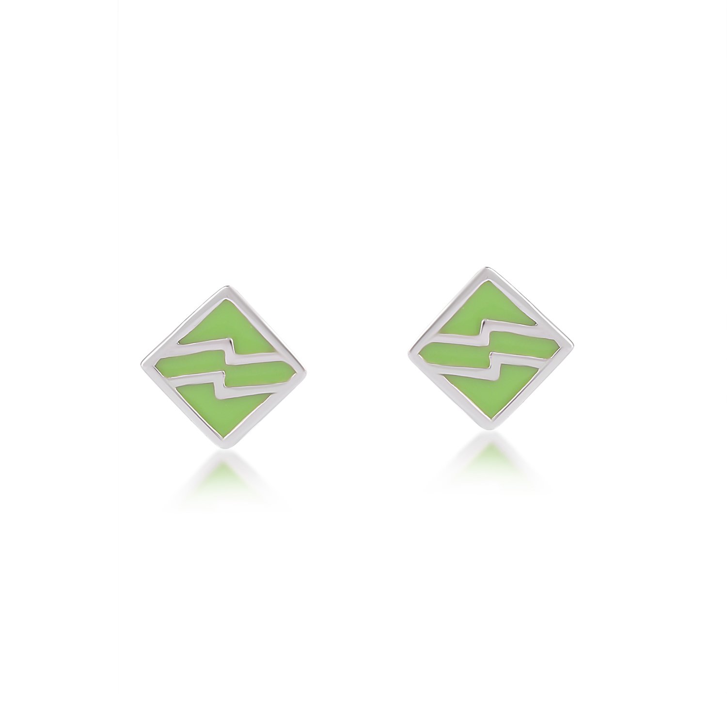 925 Sterling Silver Geometric Green Enamel Stud Earrings