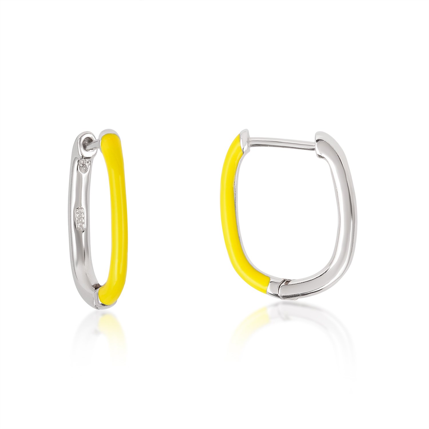 Crafted from high-quality sterling silver, these hoops boast durability and lasting shine, making them a timeless addition to your jewelry box. The smooth oval-shaped design, paired with the vivid yellow enamel detailing, creates a unique blend of contemporary and cheerful charm. The polished silver finish enhances the brilliance of the enamel, offering a stunning contrast that catches the eye effortlessly.