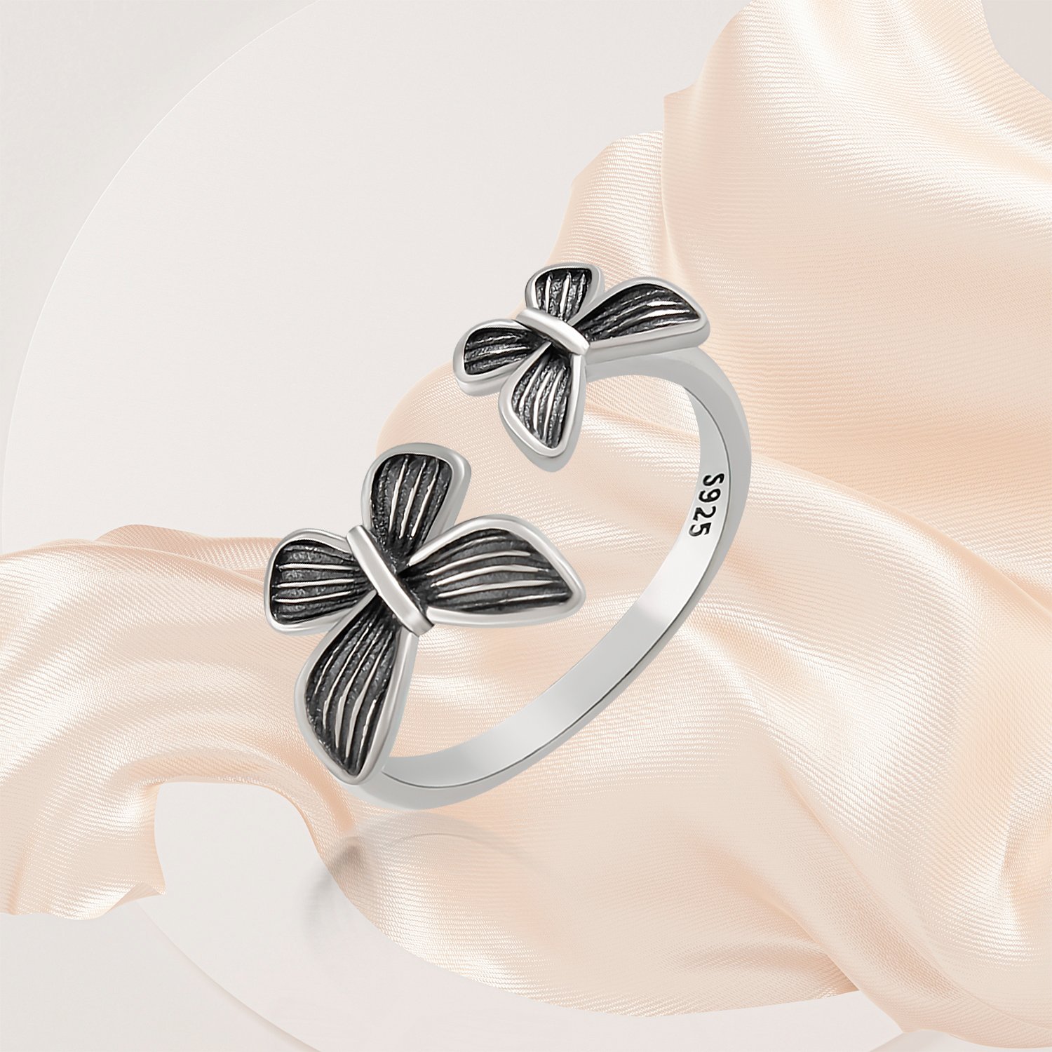 Crafted from premium-quality 925 sterling silver, this ring offers durability and a polished yet rustic finish that enhances its timeless appeal. Whether paired with casual attire or used as a statement piece for more formal occasions, this bow ring adds a hint of playful sophistication to any outfit.