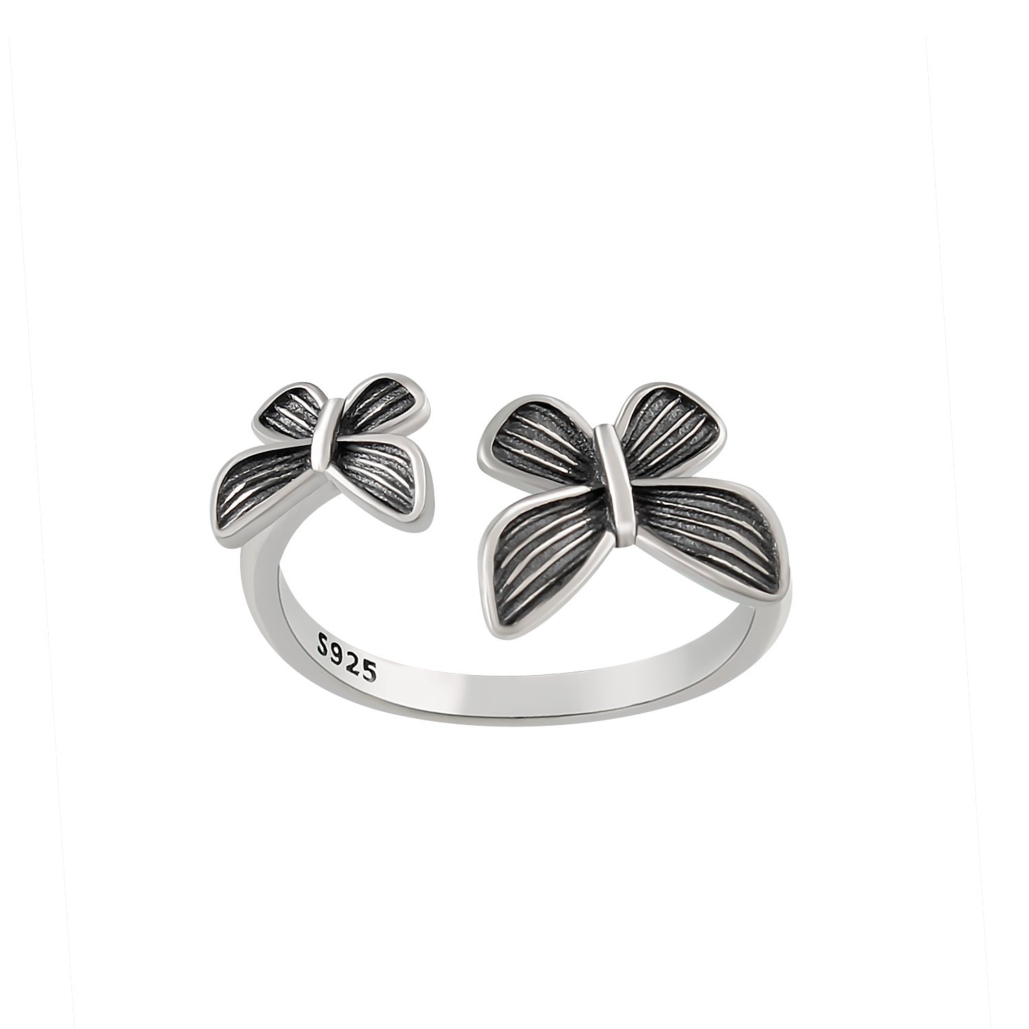 925 Sterling Silver Oxidized Adjustable Bow Ring