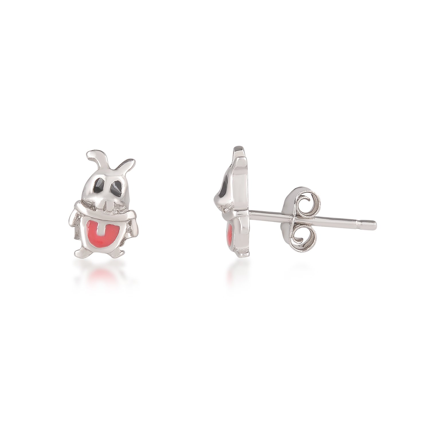 Adorable Bunny Skull-Themed Sterling Silver Stud Earrings with Enamel Detailing ? Unique and Playful Jewelry for Everyday Wear