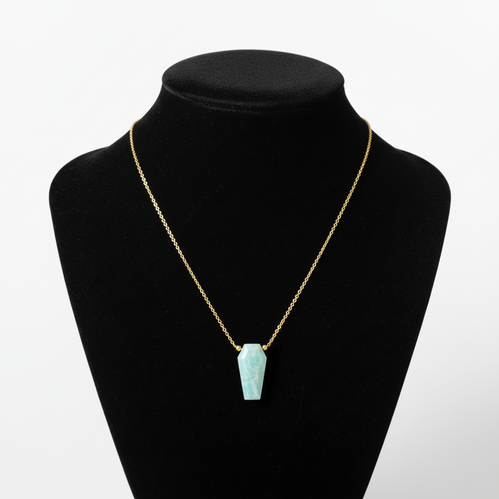 Elegant Amazonite Coffin Pendant Necklace with modern minimalist design