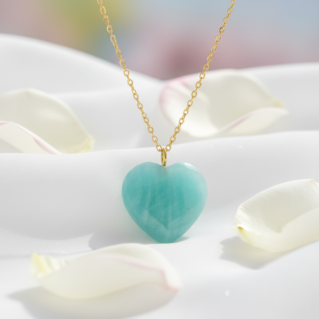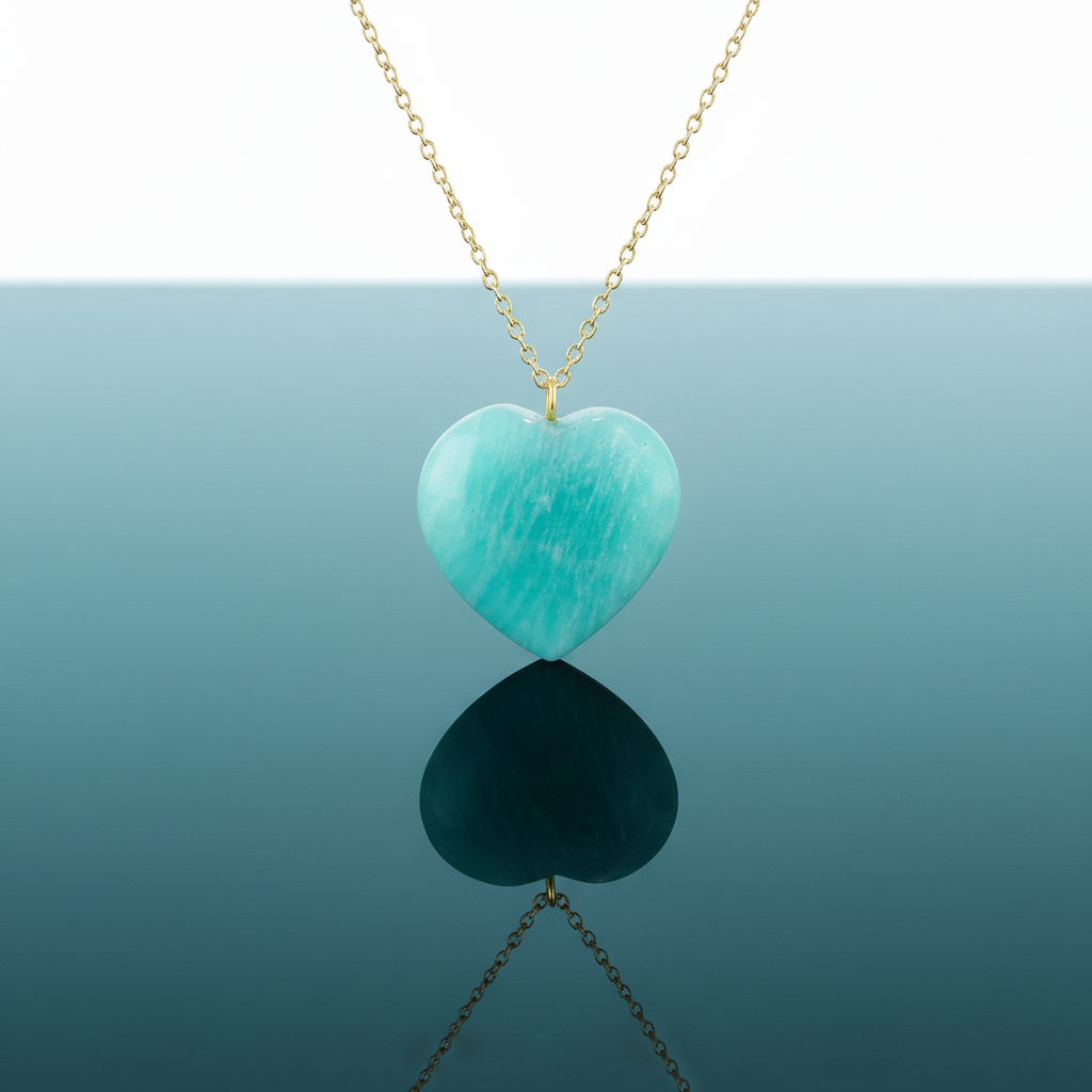 • Elegant Amazonite Heart Necklace designed with a smooth heart-shaped gemstone, offering a soft, calming aqua-green color that adds a fresh and feminine touch to everyday outfits as well as special occasions. Its minimalist yet meaningful design makes it perfect for layering or wearing as a statement piece.