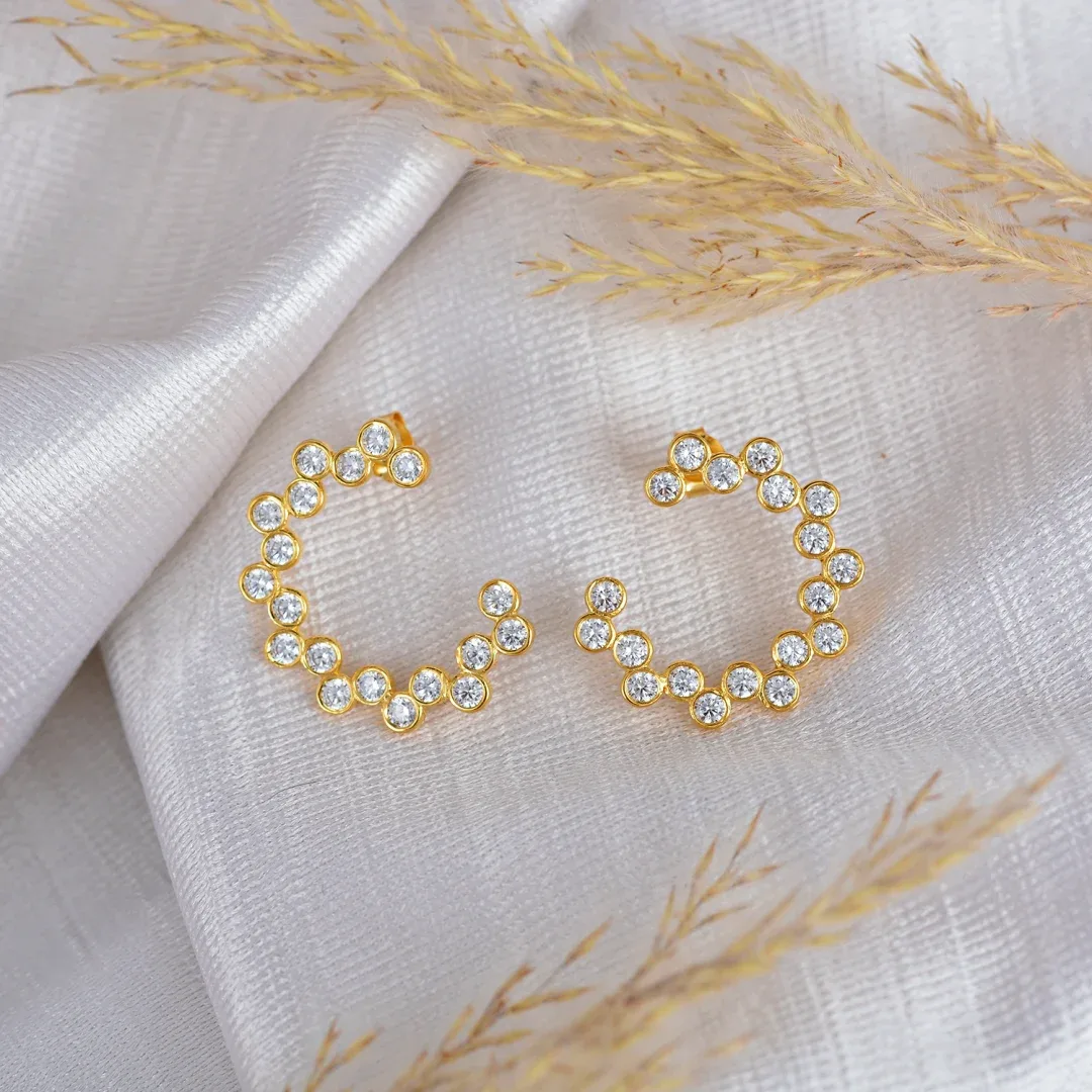 Presented in an elegant jewelry box, these American Diamond Gold Rounded Earrings also make a thoughtful and impressive gift. Whether for a birthday, anniversary, or any special occasion, these earrings are a classic choice that will be cherished for years to come.