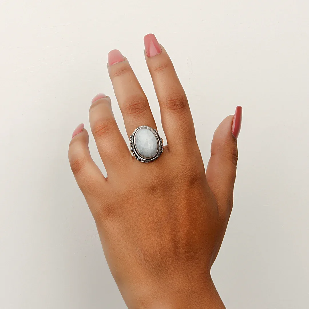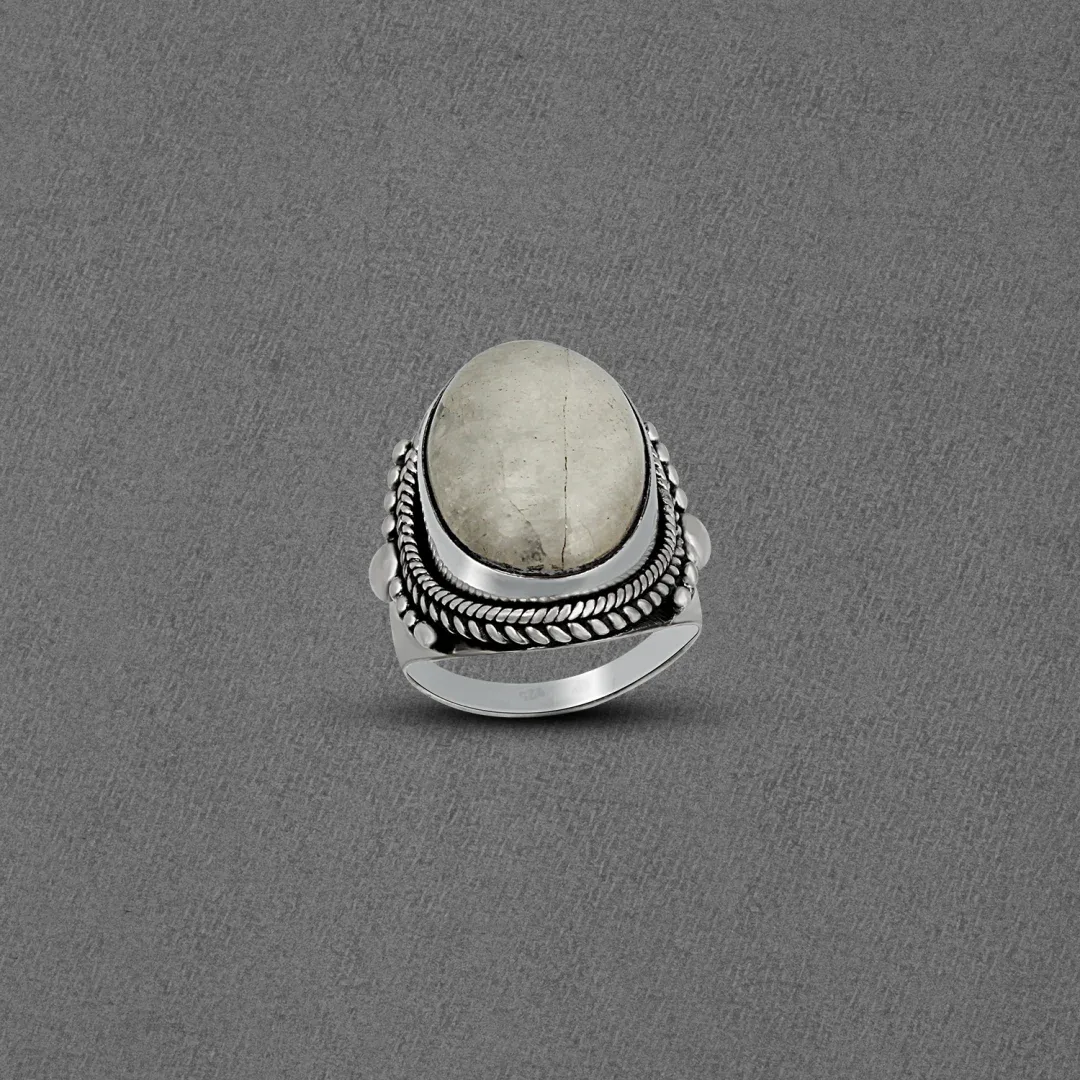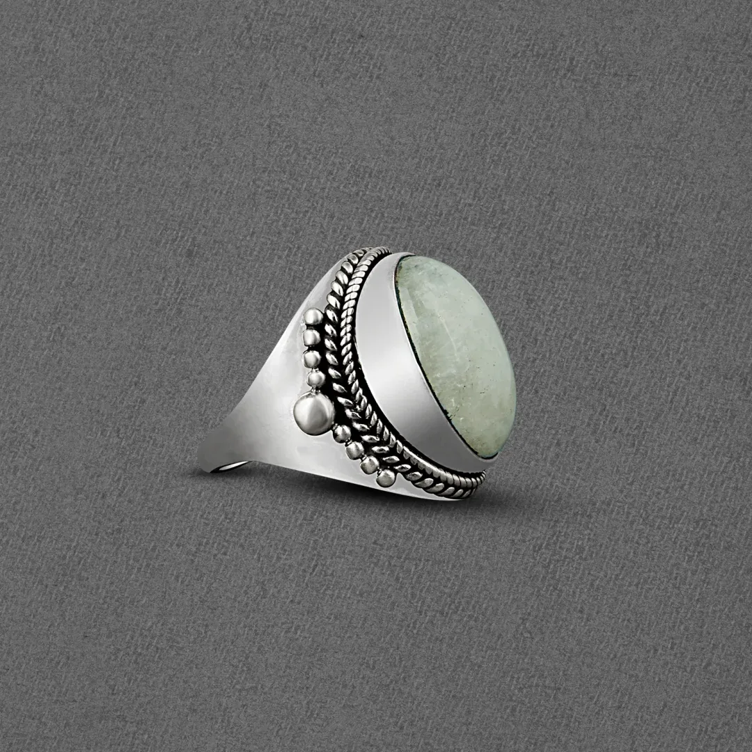 Moreover, crafted in sterling silver, this ring exudes a timeless charm and sophistication. The silver band, meticulously shaped and polished, serves as the perfect complement to the exquisite gemstone, enhancing its beauty and radiance.