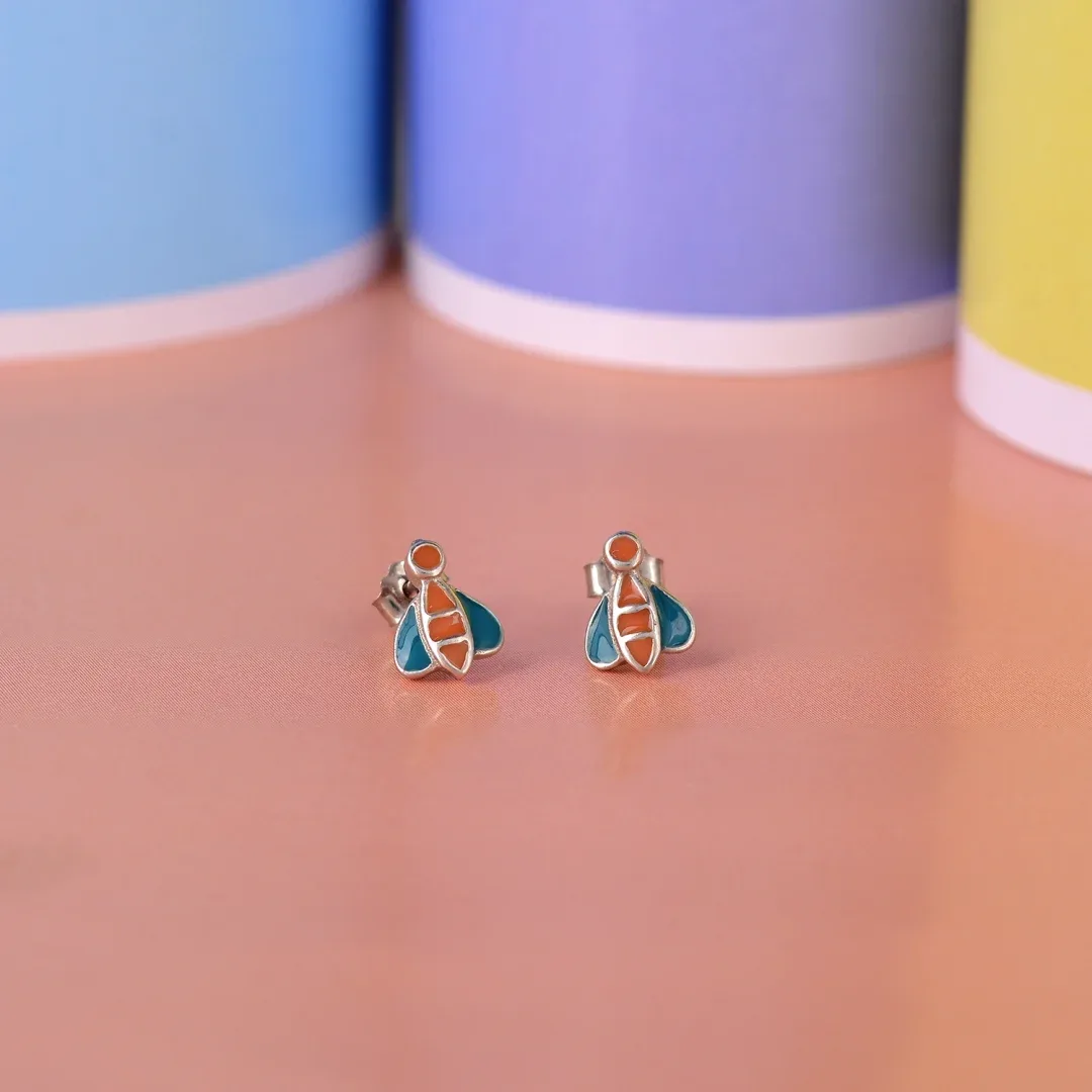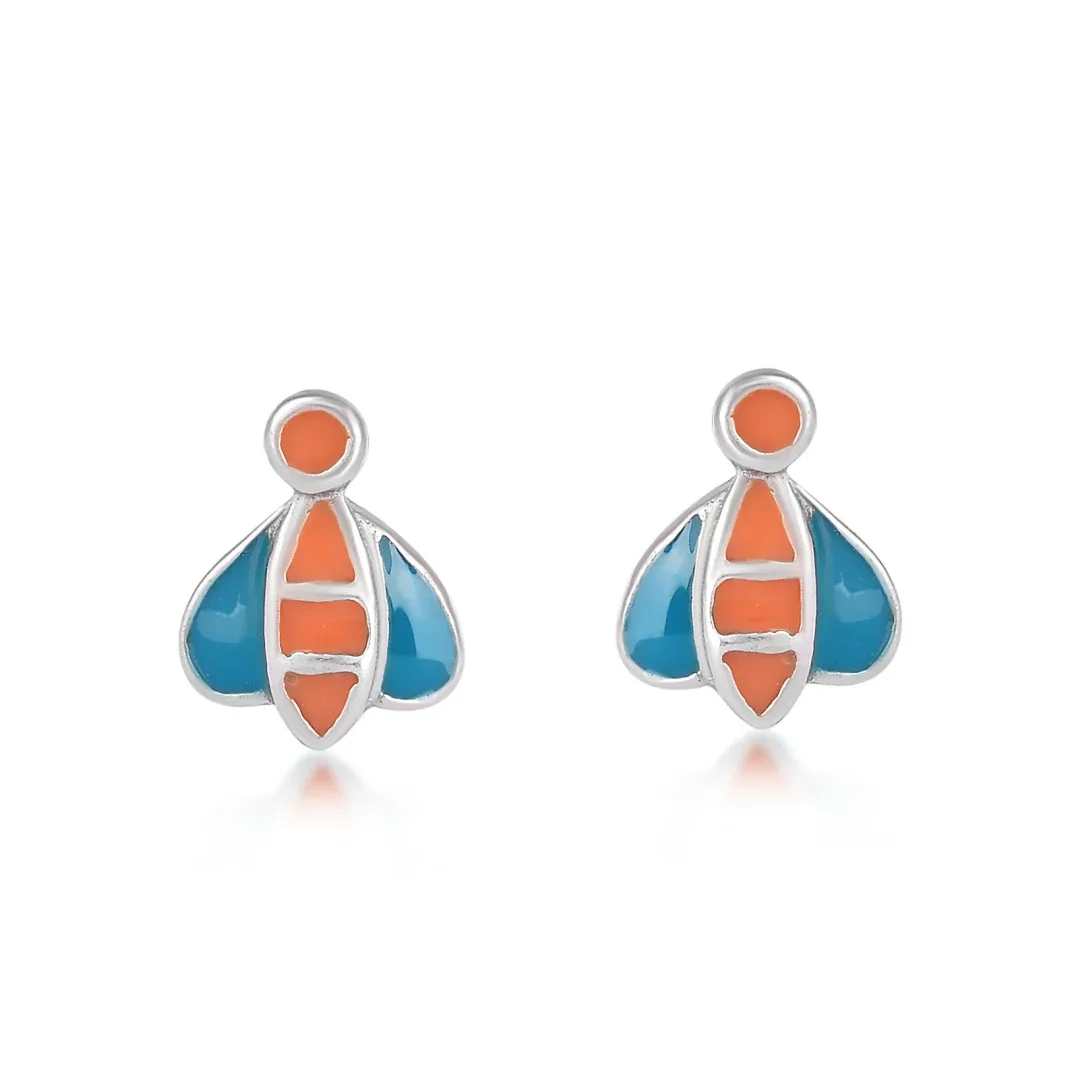 Add a splash of color and charm to your jewelry collection with these delightful bee stud earrings. Expertly crafted from high-quality 925 sterling silver, these earrings are designed to bring a touch of whimsy and fun to your everyday look. Featuring a vibrant orange and blue enamel finish, the bee design comes to life with bright, cheerful colors that will instantly add personality to any outfit. The playful color combination, inspired by nature, makes these earrings ideal for anyone who enjoys wearing unique, fun accessories that stand out from the crowd.