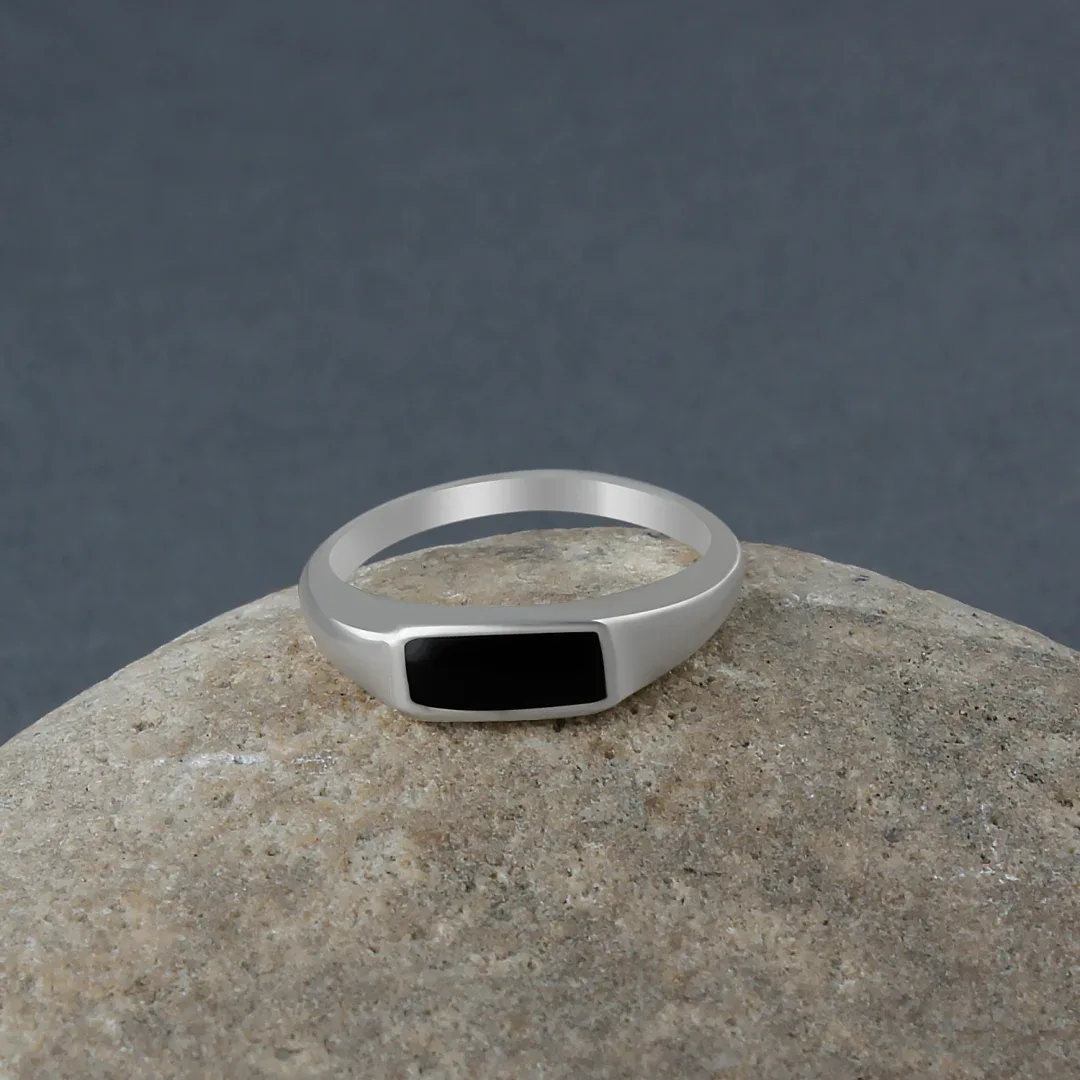 - Exuding confidence and sophistication, this stylish men?s ring features a mesmerizing black onyx gemstone set in a sleek and sturdy design.