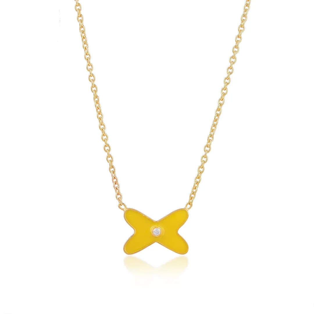 At the heart of this exquisite necklace is the butterfly pendant, available in two distinct yet equally stunning finishes. The first option showcases the pendant in a classic polished gold, reflecting a traditional and luxurious aesthetic. The smooth gold finish enhances the butterfly?s delicate form, creating a subtle yet eye-catching effect. The second option features a vibrant yellow enamel coating, offering a more contemporary and playful twist on the classic design. This bright, cheerful finish is perfect for those who wish to express their individuality and stand out with a splash of color.