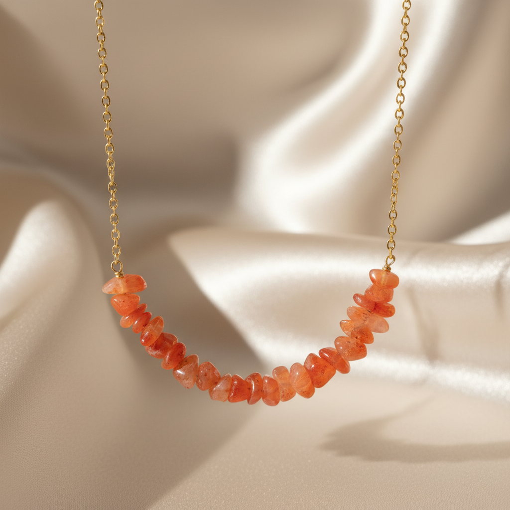 Carnelian Chip Bar Necklace Gold Plated Leo Birthstone