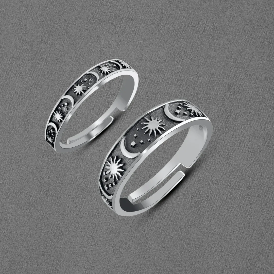 • Timeless silver oxidized rings reflecting celestial harmony.