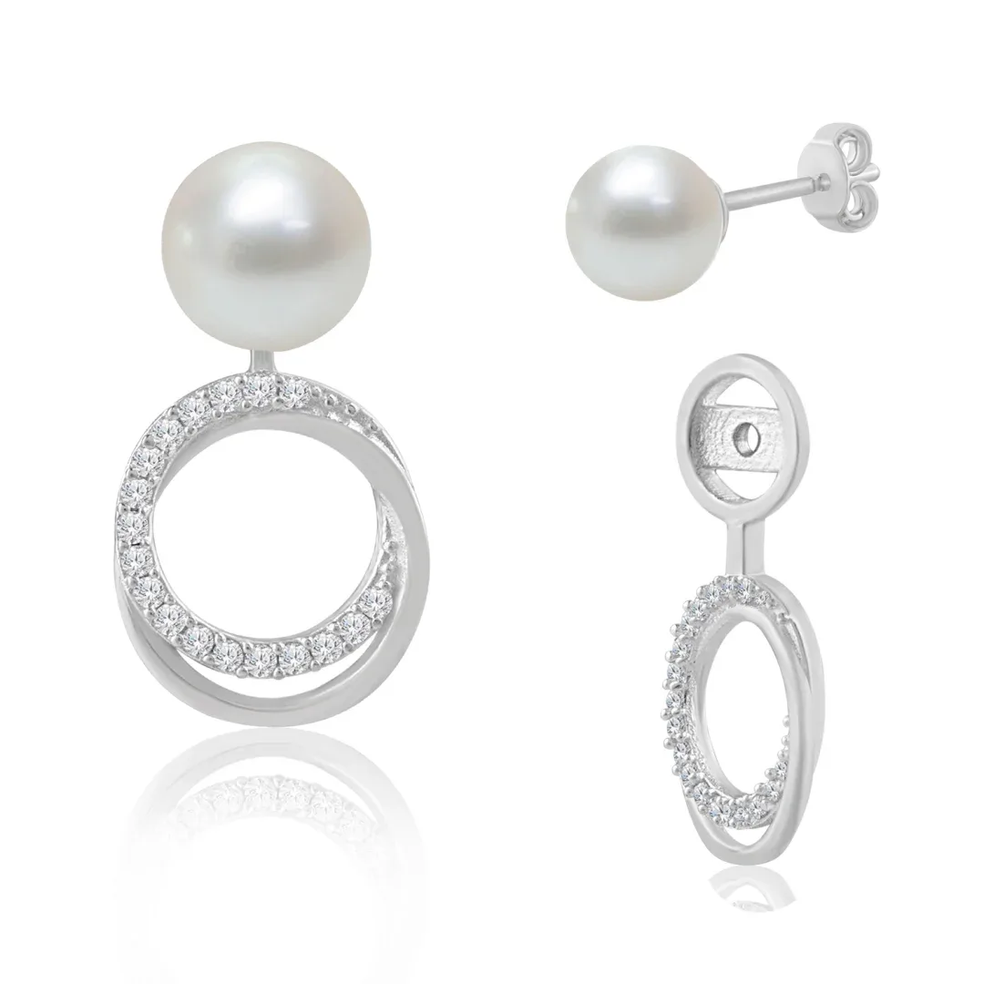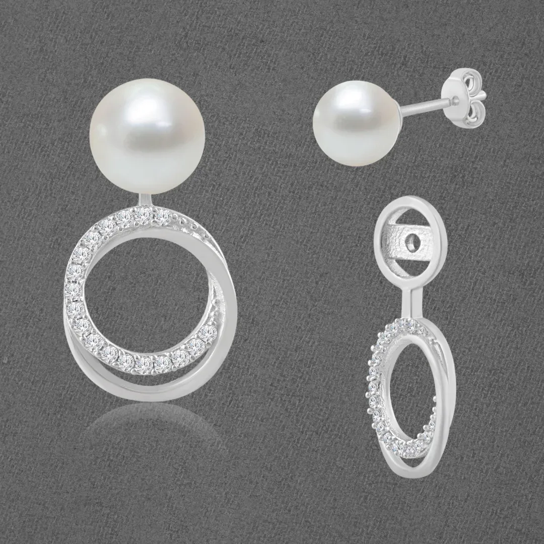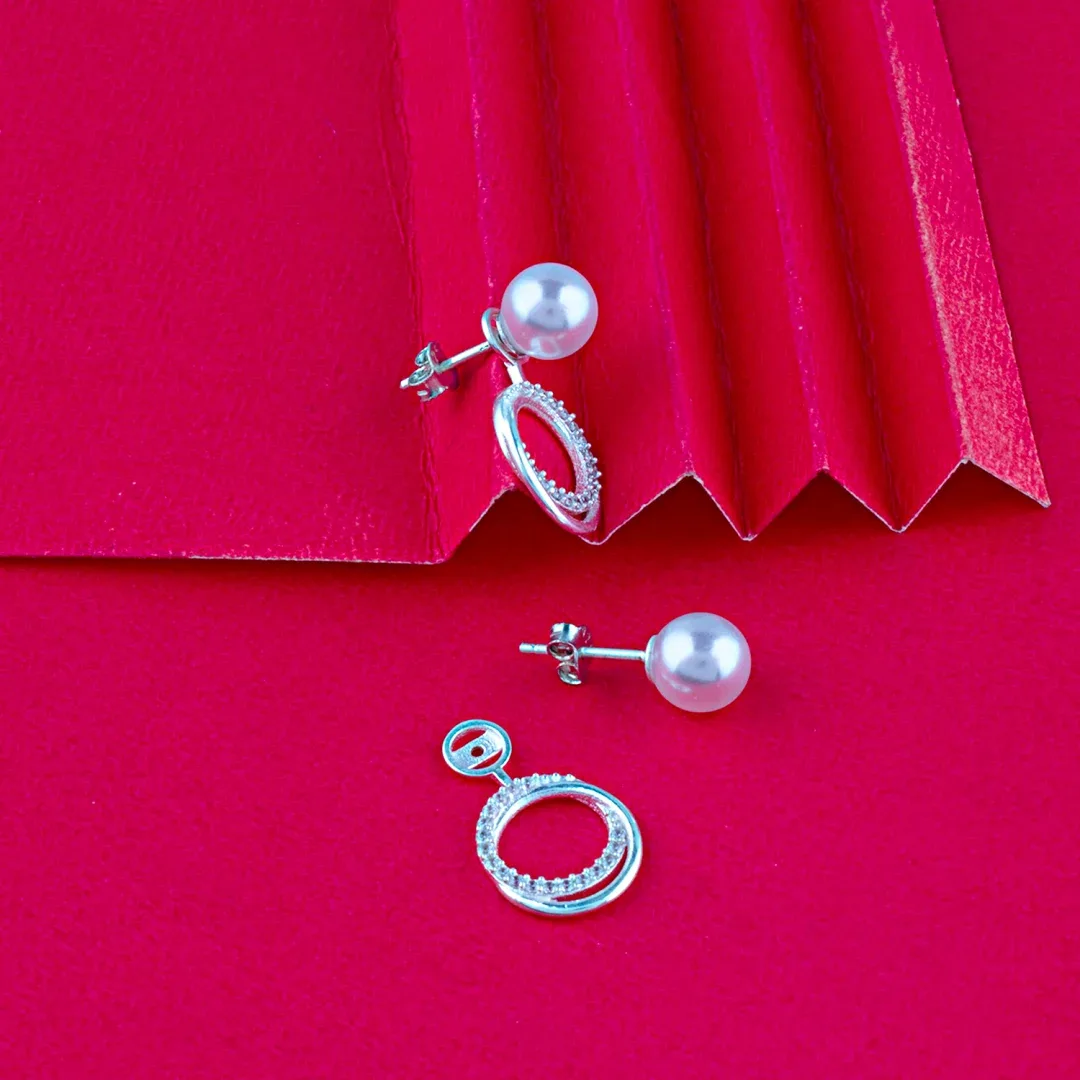 Add a touch of elegance and sophistication to your look with these stunning 925 sterling silver trendy 2-way pearl earrings with American diamond stone in circle of life dangle. Furthermore, these versatile earrings can effortlessly transition between studs and danglers, ensuring they’re perfect for any occasion, day or night.