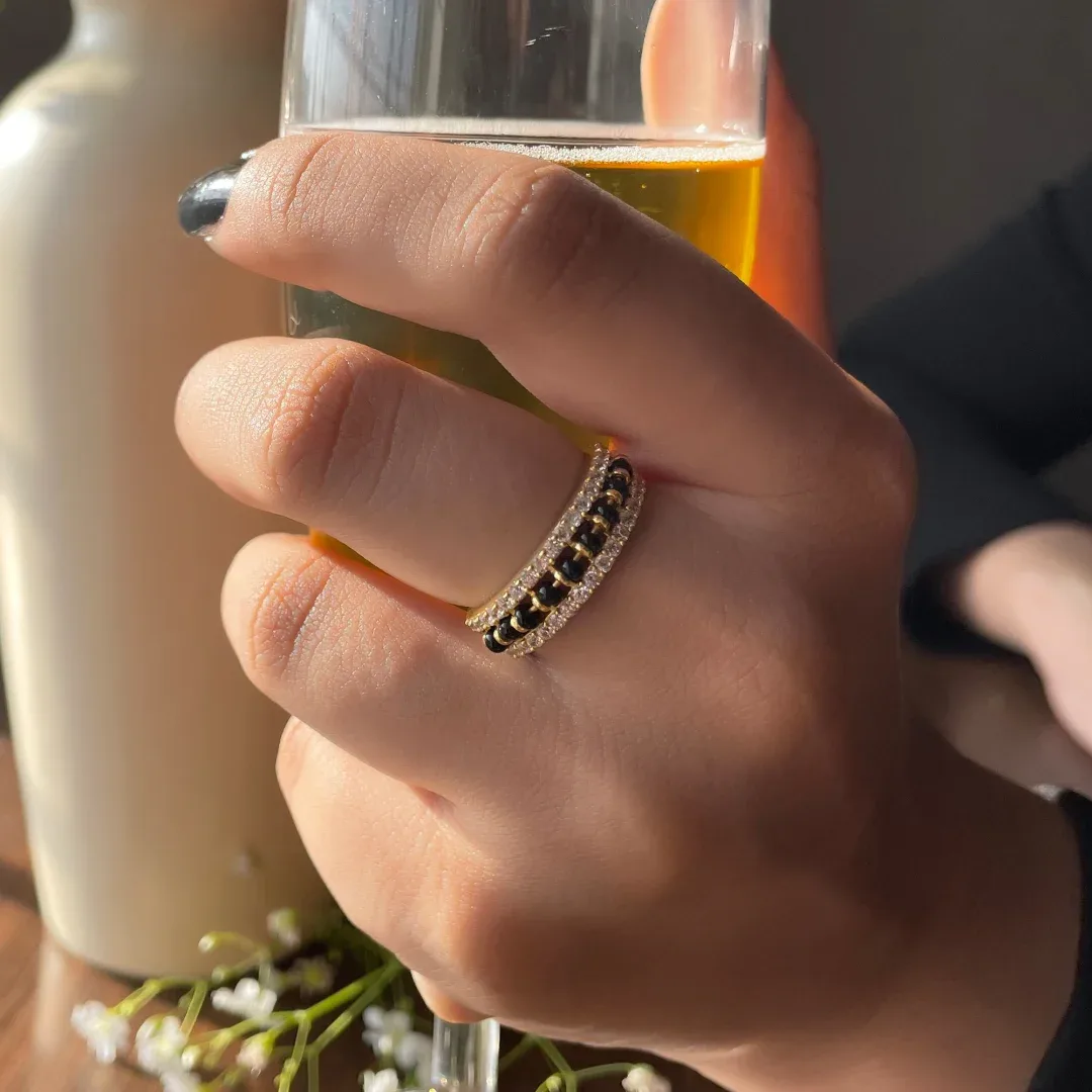 - Entwined with fine black spinel for a bold, sophisticated contrast