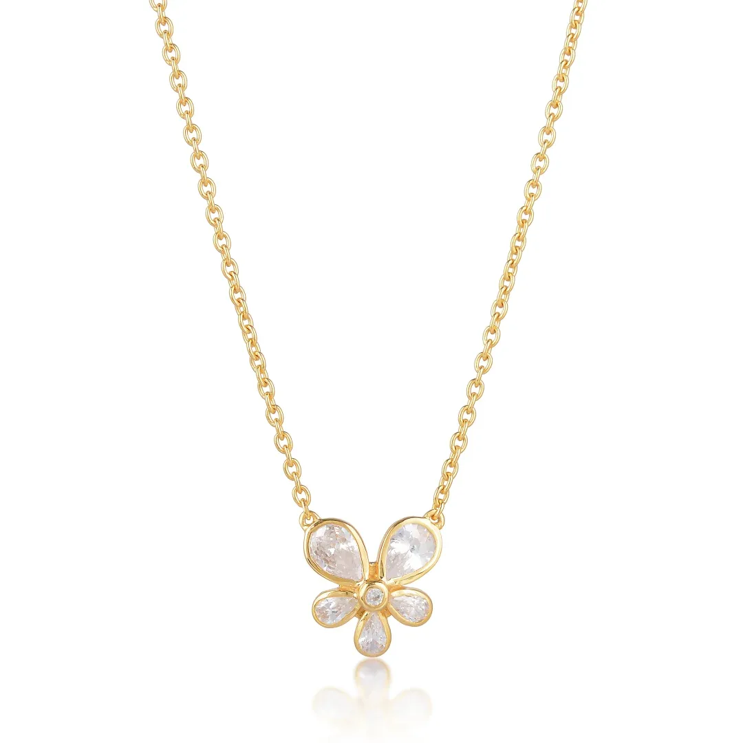 Indulge in the elegance and symbolism of this exquisite pendant necklace, a piece designed to capture both the beauty of nature and the essence of refined style. The pendant features a delicately crafted, a symbol of transformation and new beginnings, making it a meaningful accessory for those who cherish growth and change. The is adorned with sparkling crystal accents that are meticulously set to catch the light from every angle, creating a dazzling effect that is sure to draw attention. These crystals, with their brilliant shine, add a layer of sophistication to the piece, making it perfect for both day-to-day wear and special occasions.