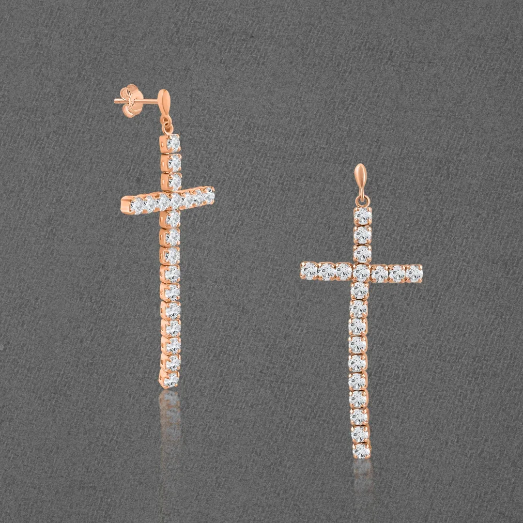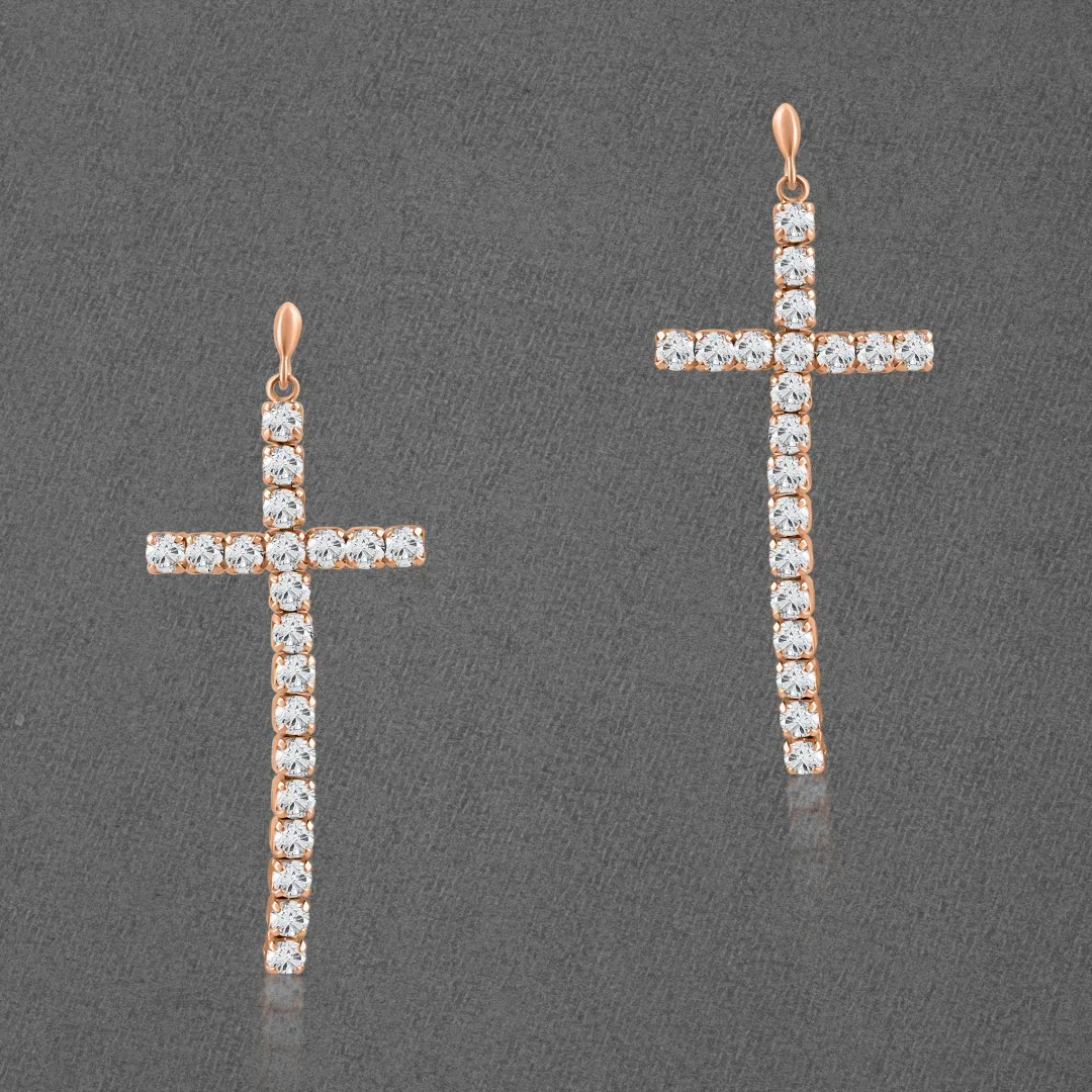 Elevate your ensemble with the Elegant Grace Cross Long Drop Earrings, where timeless sophistication meets modern style. These earrings feature a sleek, elongated cross design that dangles gracefully from your earlobes, capturing light and attention with every movement. The refined silhouette of the cross is complemented by a polished finish, exuding a subtle yet striking elegance. Ideal for formal occasions or adding a touch of class to everyday wear, these earrings offer a perfect balance of contemporary flair and classic charm. Embrace enduring style with the understated beauty of these exquisite drop earrings.