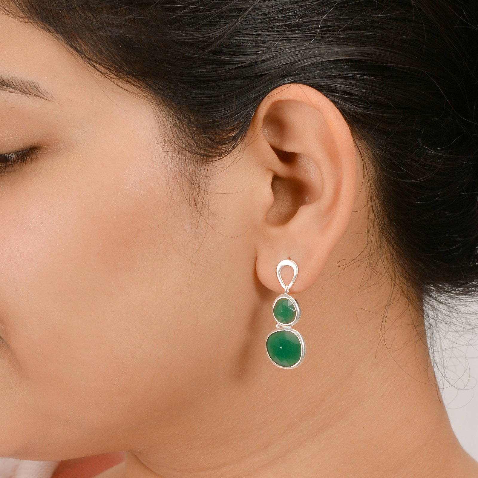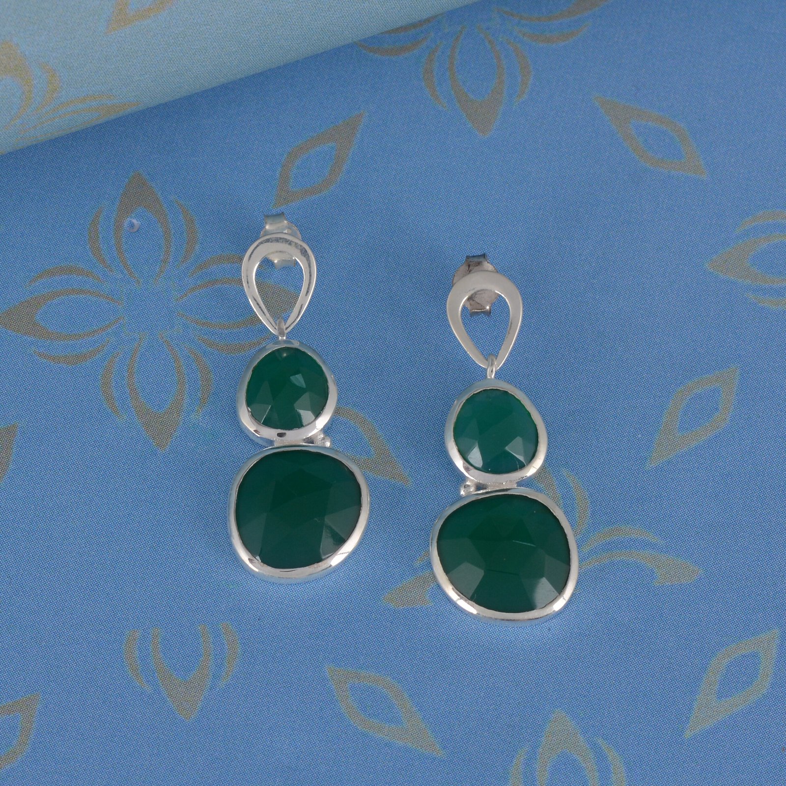 Elegant Green Onyx Gemstone Earrings in 925 Sterling Silver ? A Perfect Blend of Sophistication and Timeless Beauty.