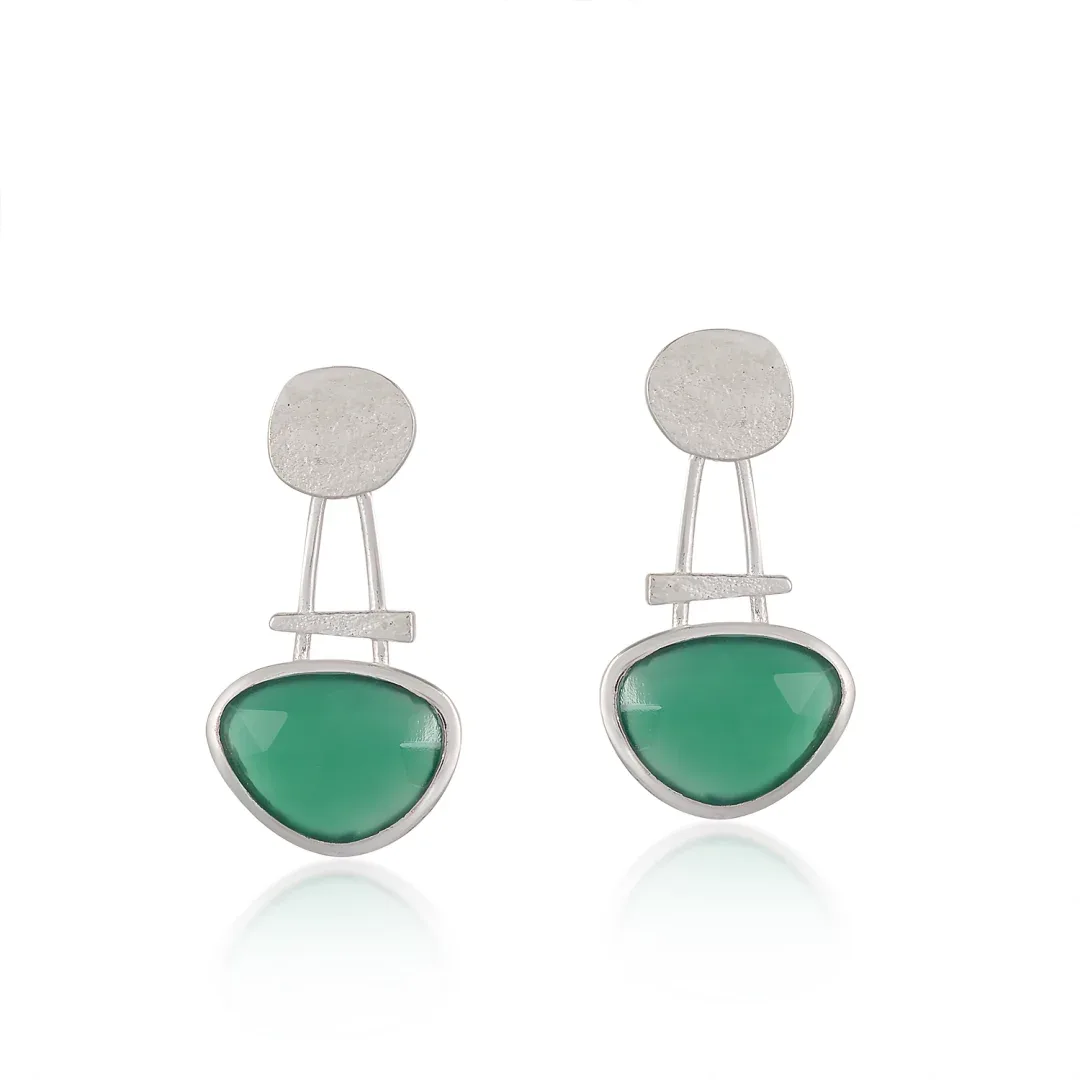 Each earring features a meticulously cut green onyx stone, carefully selected for its exceptional color and clarity. This design choice enhances the stone?s natural brilliance while maintaining a sleek and polished appearance.