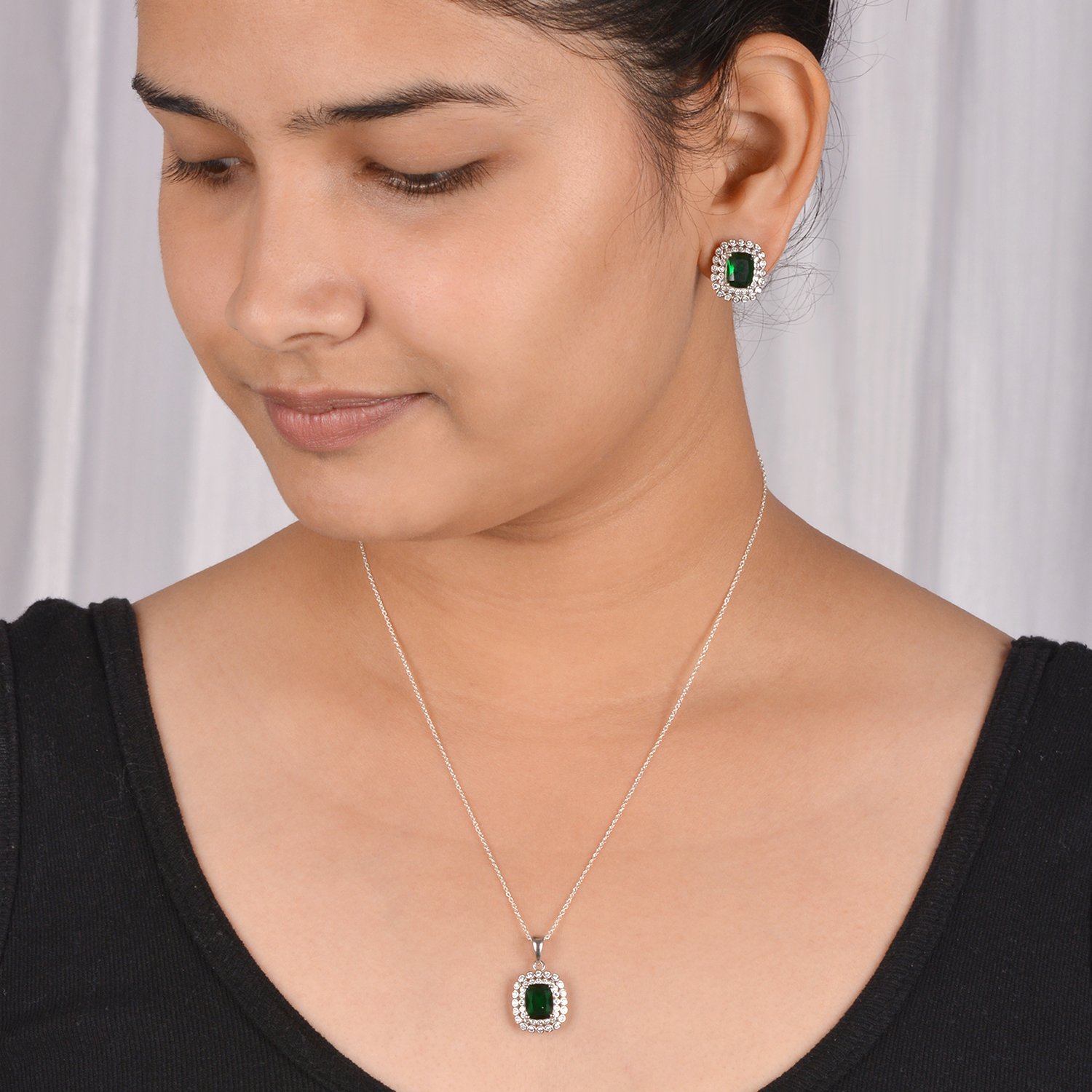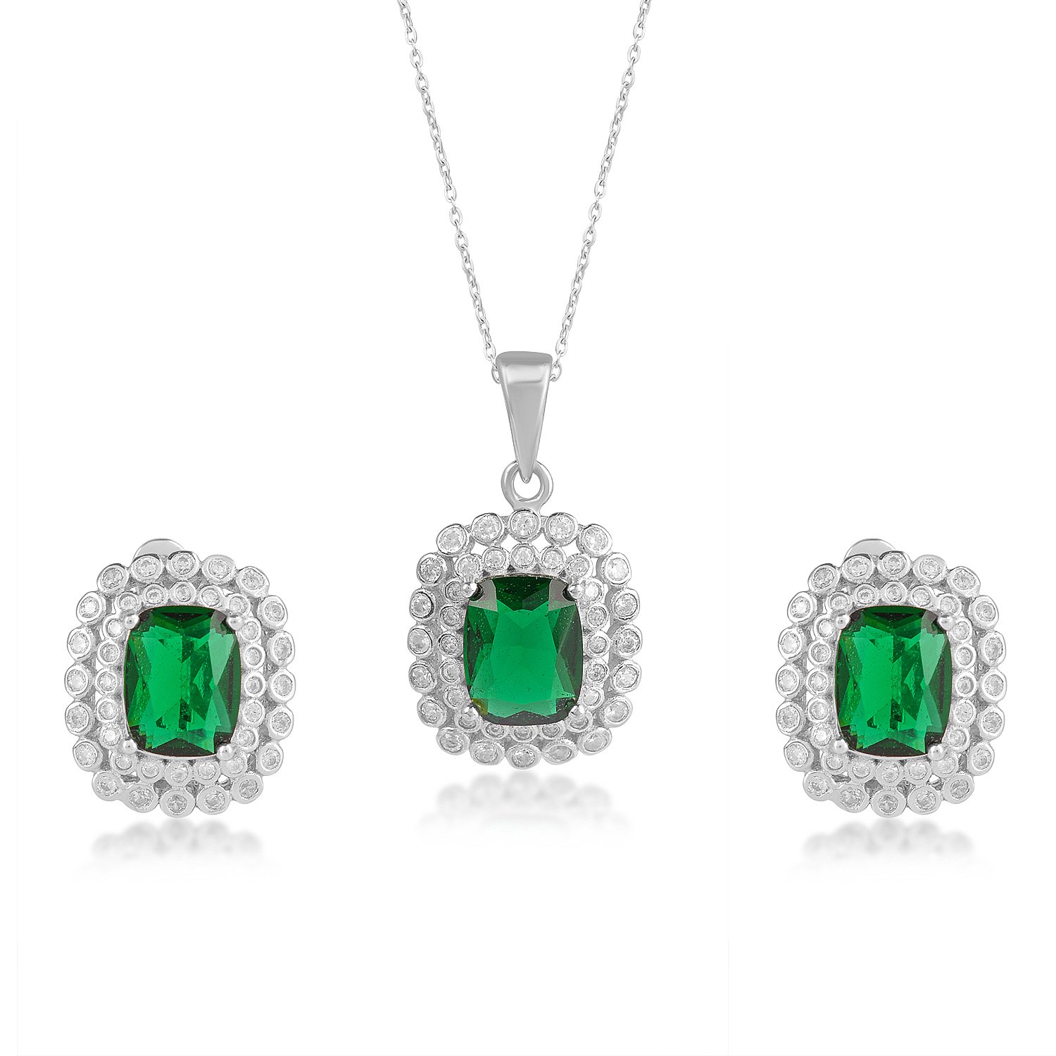 Emerald Sterling Silver Necklace, Earrings Set For Her (Set)