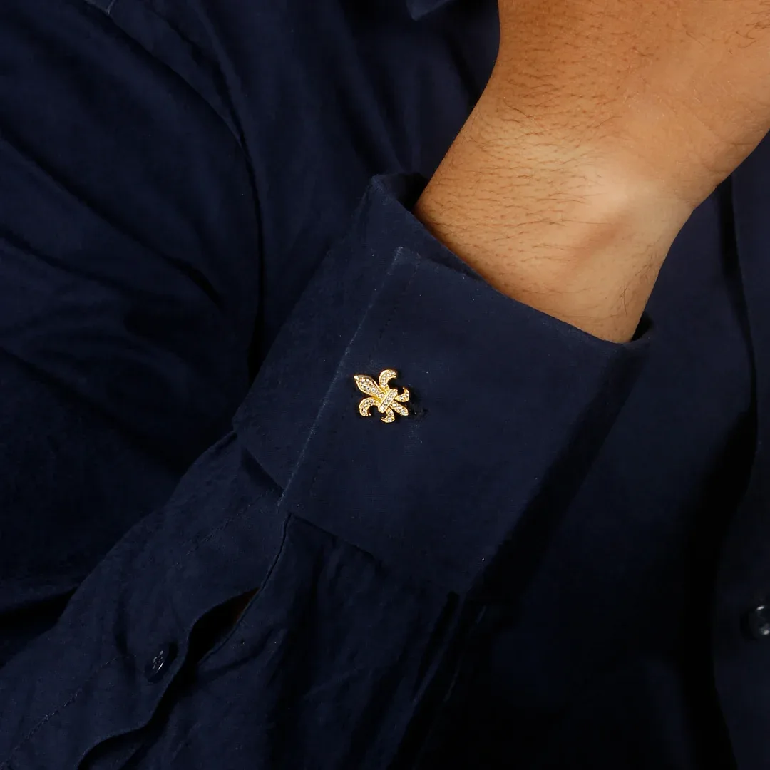 Handcrafted 925 sterling silver cufflinks featuring intricate fleur de lis designs. They’re the perfect finishing touch for any discerning gentleman.