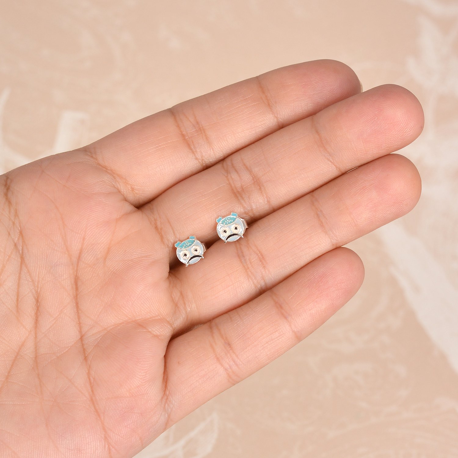 Add a whimsical touch to your jewelry collection with these Sterling Silver Funny Face Stud Earrings. Expertly crafted from high-quality sterling silver, these delightful earrings showcase a charming Funny face design, brought to life with soft light blue enamel accents. The expression and intricate detailing make these earrings a fun and unique accessory for any age, adding a splash of color and personality to your everyday look.