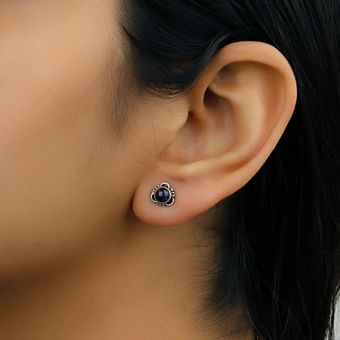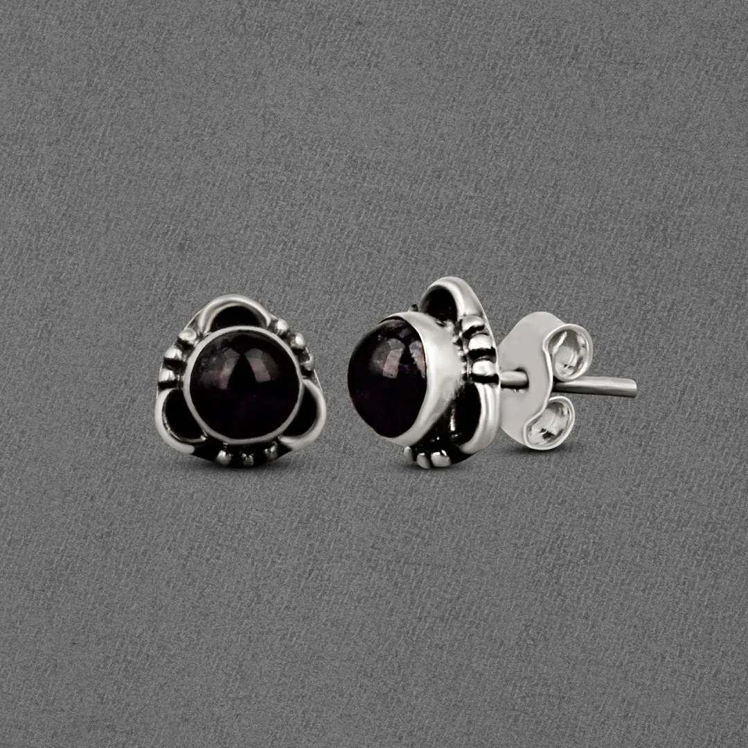• “Indulge in the allure of handcrafted luxury: Our Round Precious Stones Silver Stud Earrings showcase the beauty of sterling silver paired with meticulously chosen gemstones, creating a stunning statement piece.”