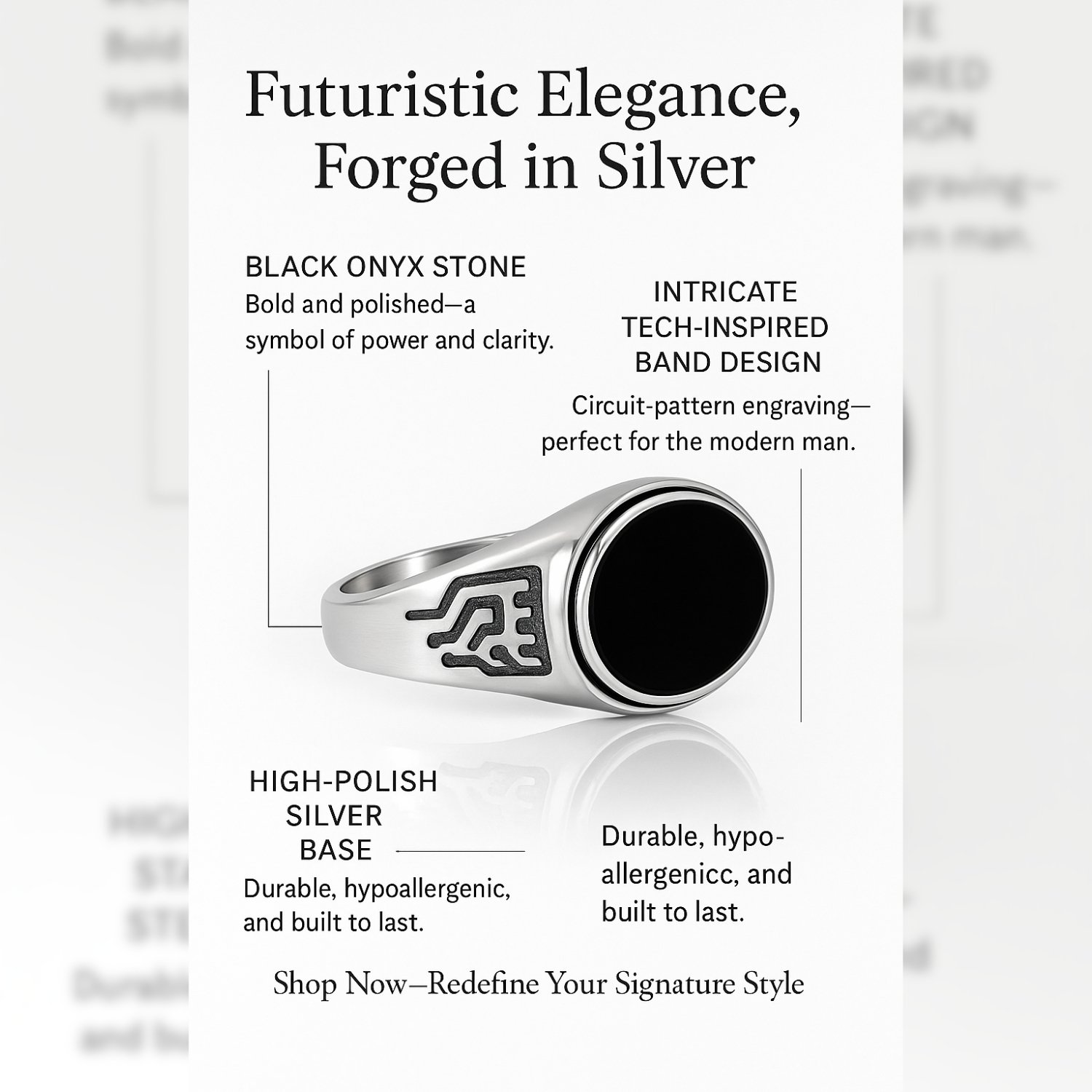 Make a bold statement with the Hudson Onyx Signet Ring, a modern classic crafted for those who lead with style. Featuring a sleek oval black onyx stone set in a silver band, this ring brings together strength and sophistication in one refined design.