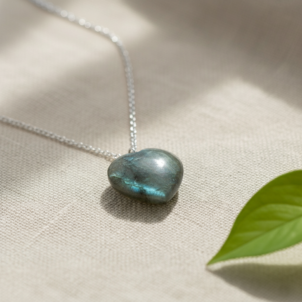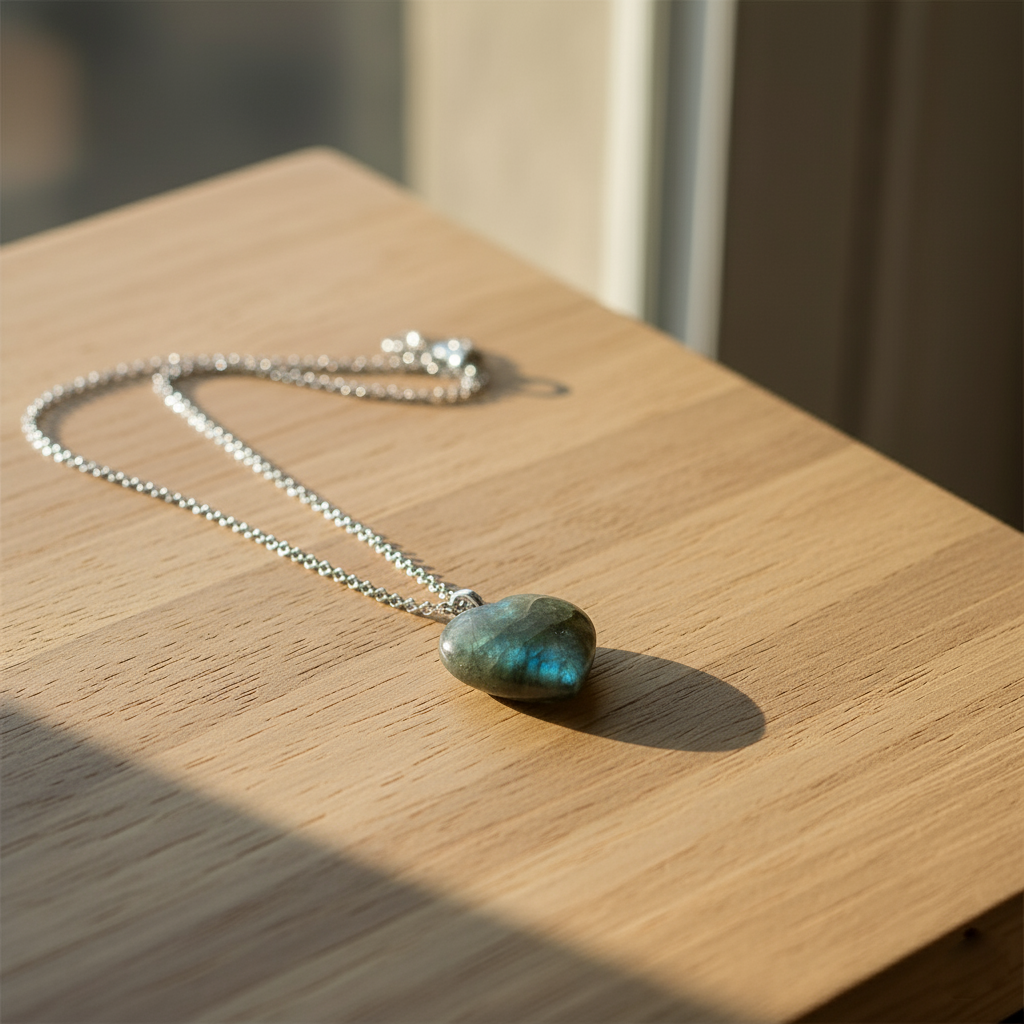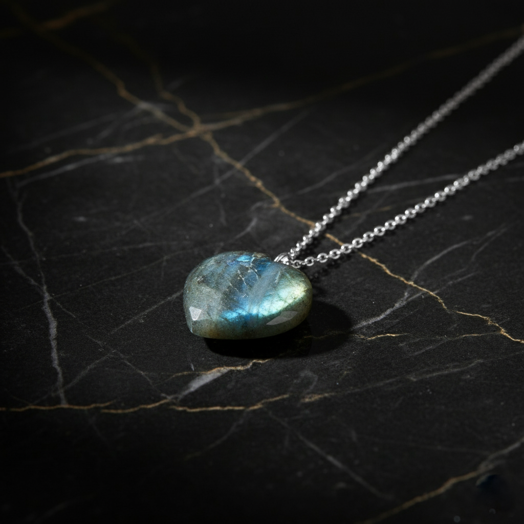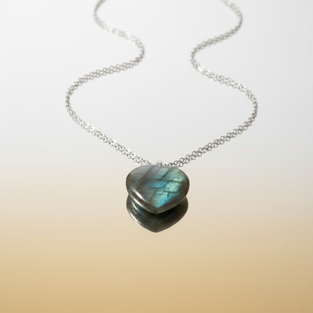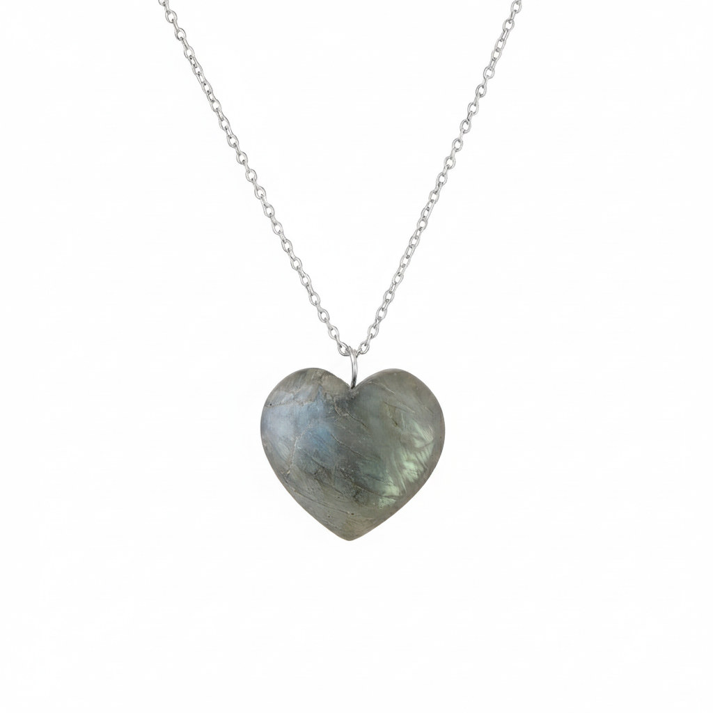 - • Design: Heart-shaped Labradorite pendant on a delicate sterling silver cable chain