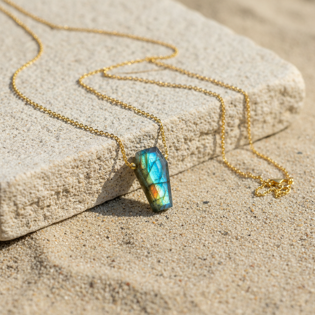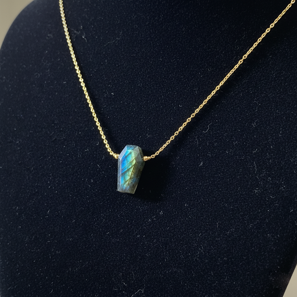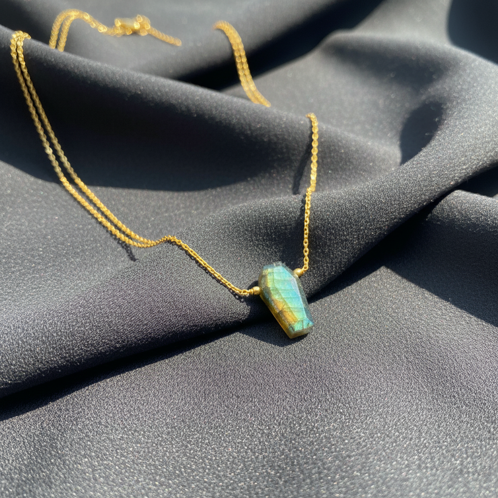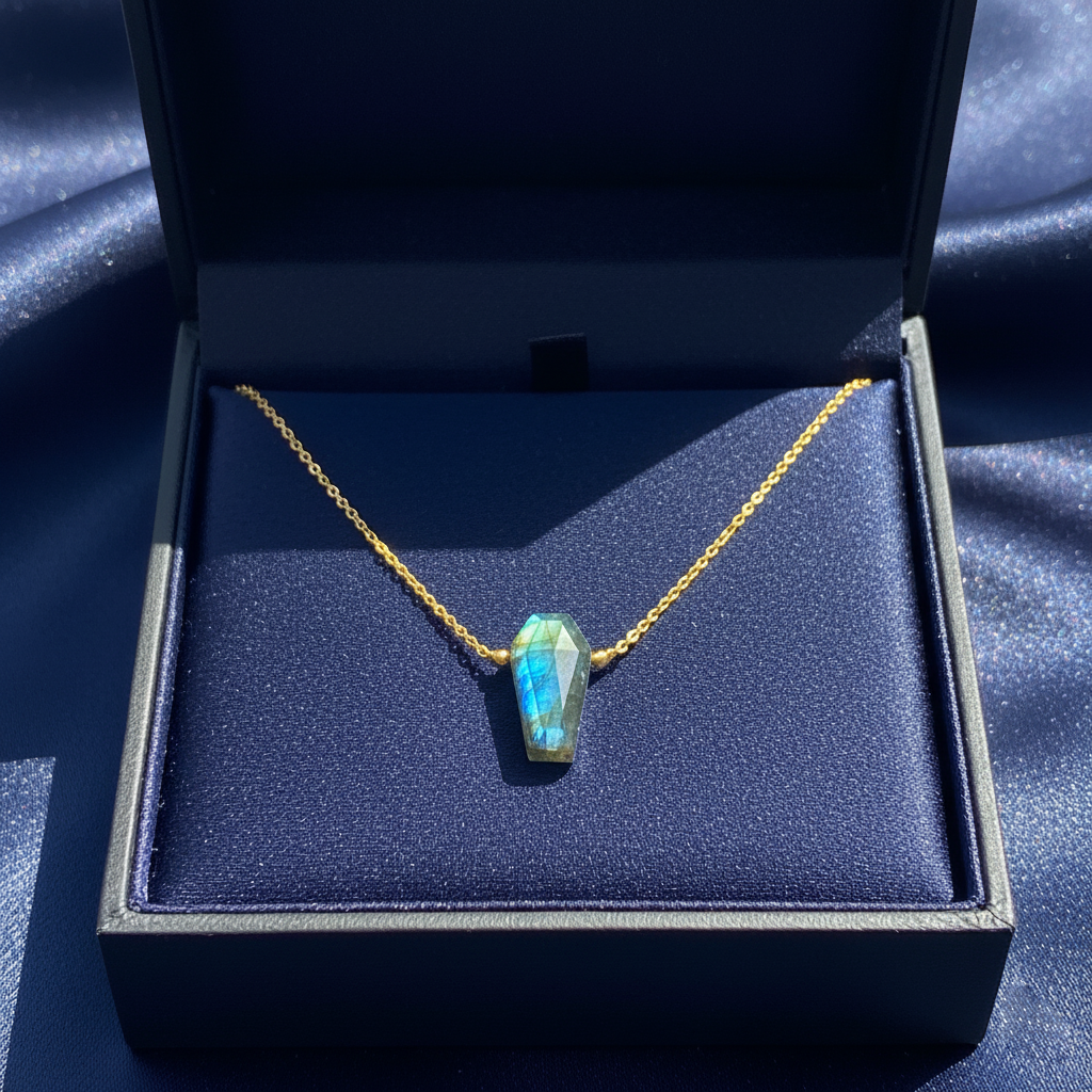 • Natural Labradorite Gemstone: Features a genuine Labradorite stone with stunning blue-green flashes, making every pendant unique.
