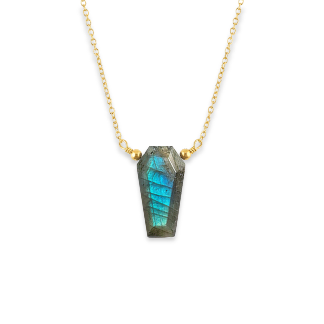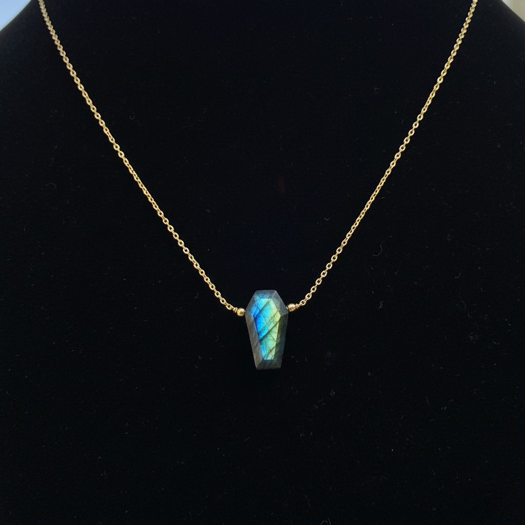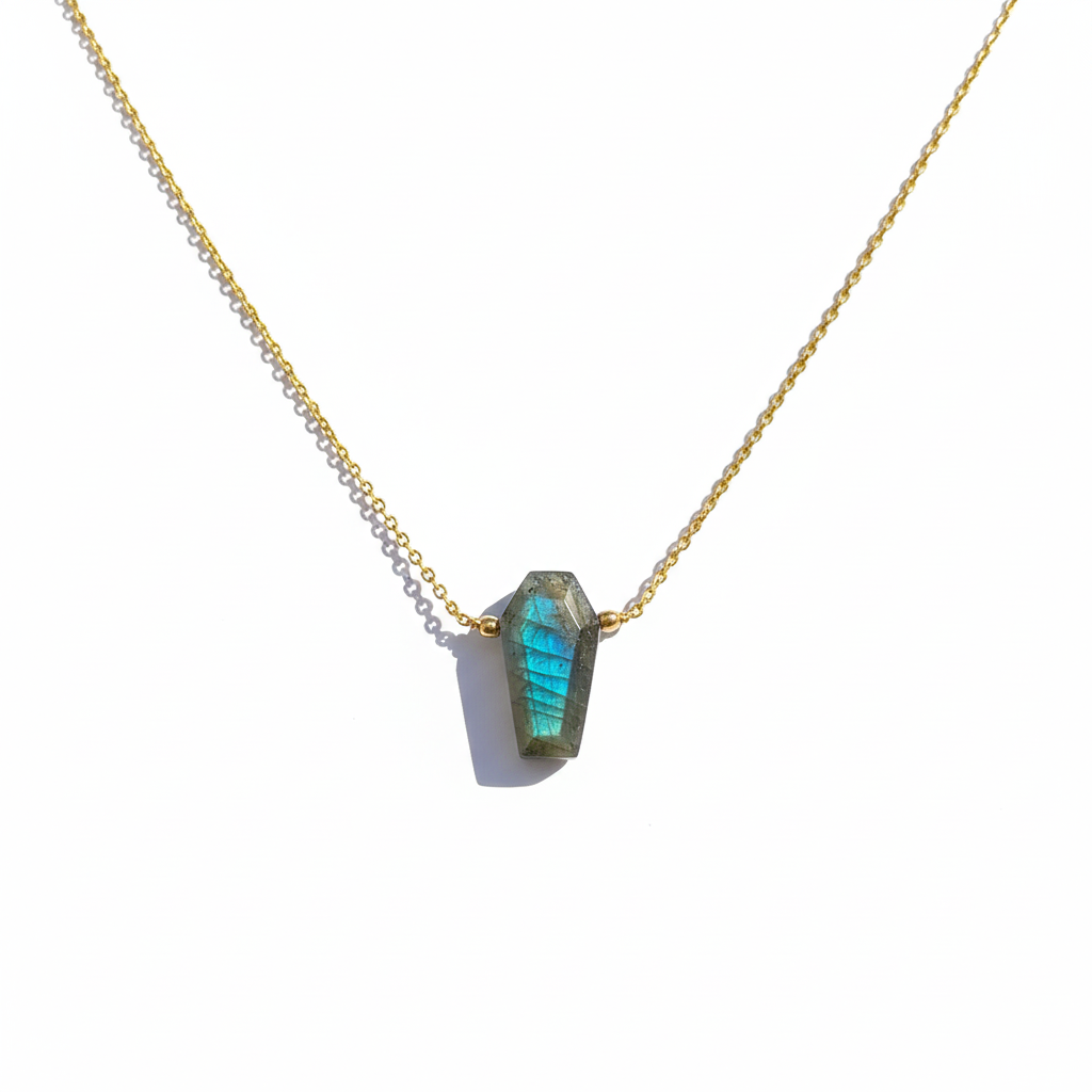 • Natural Labradorite Gemstone: Features a genuine Labradorite stone with stunning blue-green flashes, making every pendant unique.