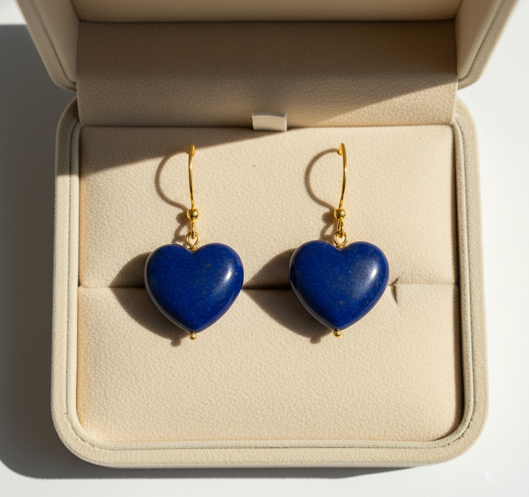 Lapis Lazuli Heart Earrings 925 Silver 18K Gold Plated Leo