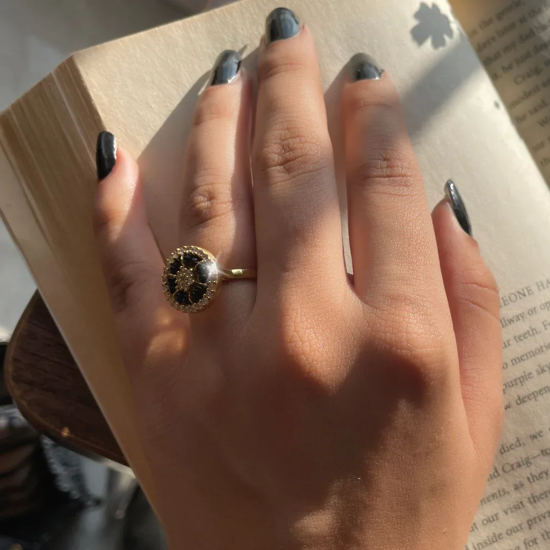 Introducing the Gem O World Product The Midnight Radiance Sterling Silver Ring. Radiance is a stunning and also luxurious piece of jewelry that combines the richness of gold with sleekness of black. The craftsmen craft this ring from high-quality silver and coat it with a layer of lustrous gold, giving it a luxurious and opulent appearance.