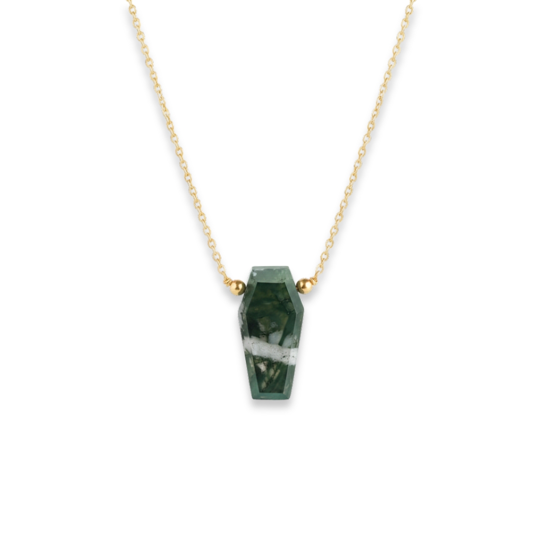 Moss Agate Coffin Necklace 925 Silver Gold Plated Virgo