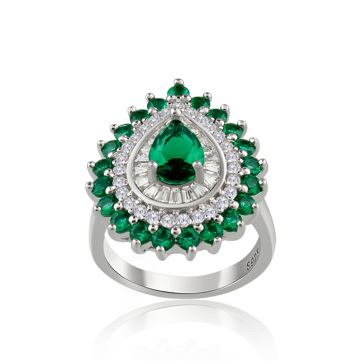 Transform your style with our Women’s Pear Shape Emerald Ring, a dazzling testament to elegant beauty and timeless sophistication.Crafted with meticulous precision, this exquisite ring features a stunning pear-shaped emerald as its centerpiece. Renowned for its distinctive shape and captivating green hue, each emerald is carefully chosen to ensure exceptional clarity and brilliance, creating a mesmerizing sparkle that catches every eye.Set in high-quality sterling silver or luxurious gold, the band of the ring complements the emerald’s allure perfectly, offering a polished finish that enhances its elegance. The setting is expertly designed to secure the emerald while allowing maximum light to illuminate its facets, intensifying its natural beauty.Perfect for both formal events and everyday wear, our Women’s Pear Shape Emerald Ring effortlessly elevates any outfit. Whether worn solo as a statement piece or paired with other jewelry for a coordinated ensemble, it exudes sophistication and grace with every wear.This ring is not just a piece of jewelry; it’s a symbol of love, prosperity, and renewal often associated with emeralds. It makes an ideal gift for birthdays, anniversaries, or other special occasions, presented in elegant packaging ready for gifting.Discover the elegant beauty and timeless sophistication of our Women’s Pear Shape Emerald Ring, available exclusively on Amazon. Let its mesmerizing emerald and exquisite craftsmanship inspire your style, creating unforgettable moments and adding a touch of luxury to your jewelry collection.