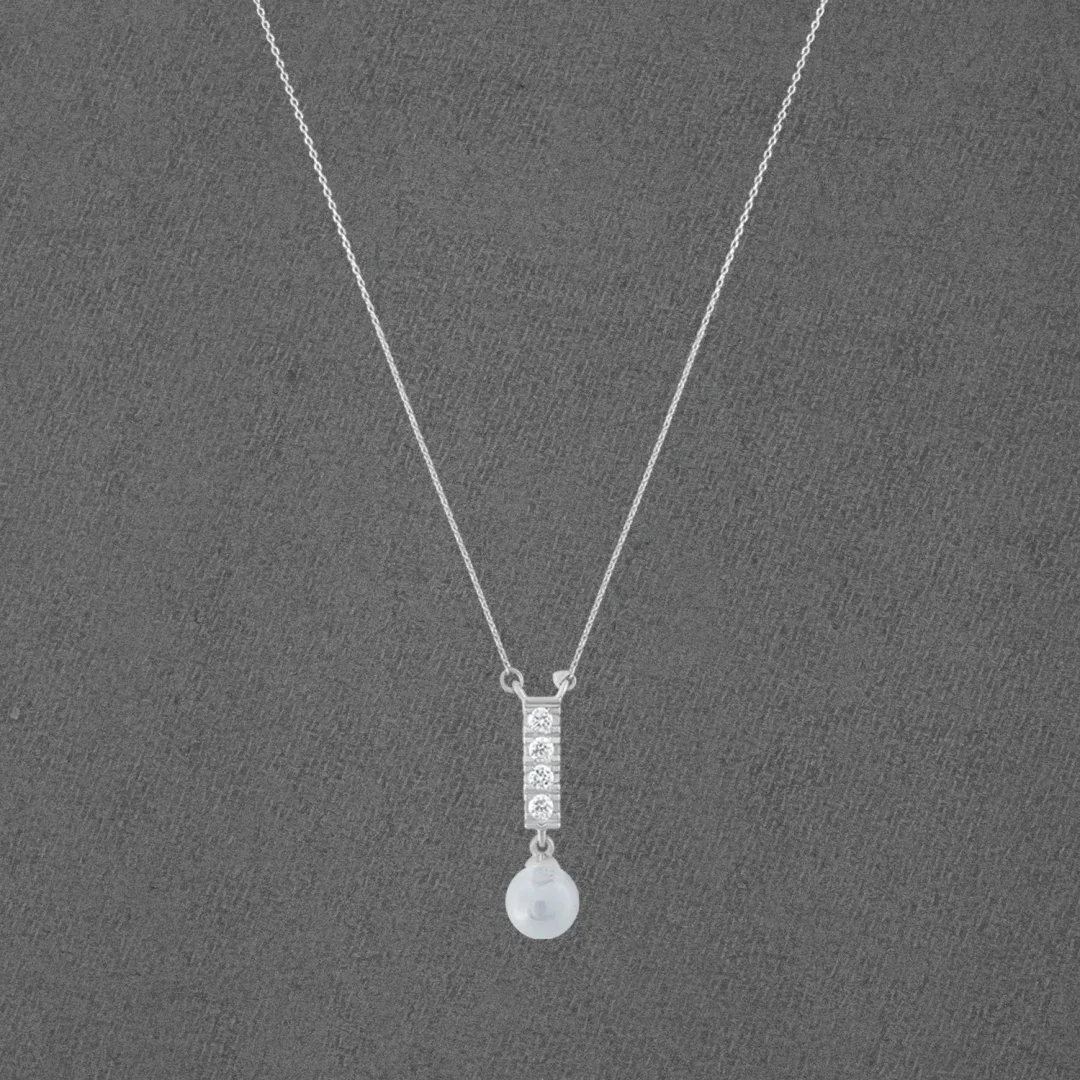 - This delicate bar drop pearl necklace is made with high-quality 925 sterling silver and features a single pearl at its bottom and american diamonds on it. It is a piece of jewelry that your daughter will cherish for years to come.