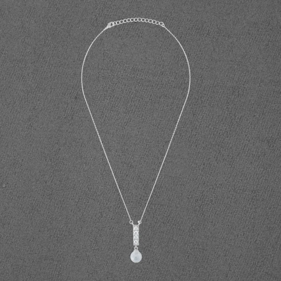 Pearl Drop Bar Silver Necklace