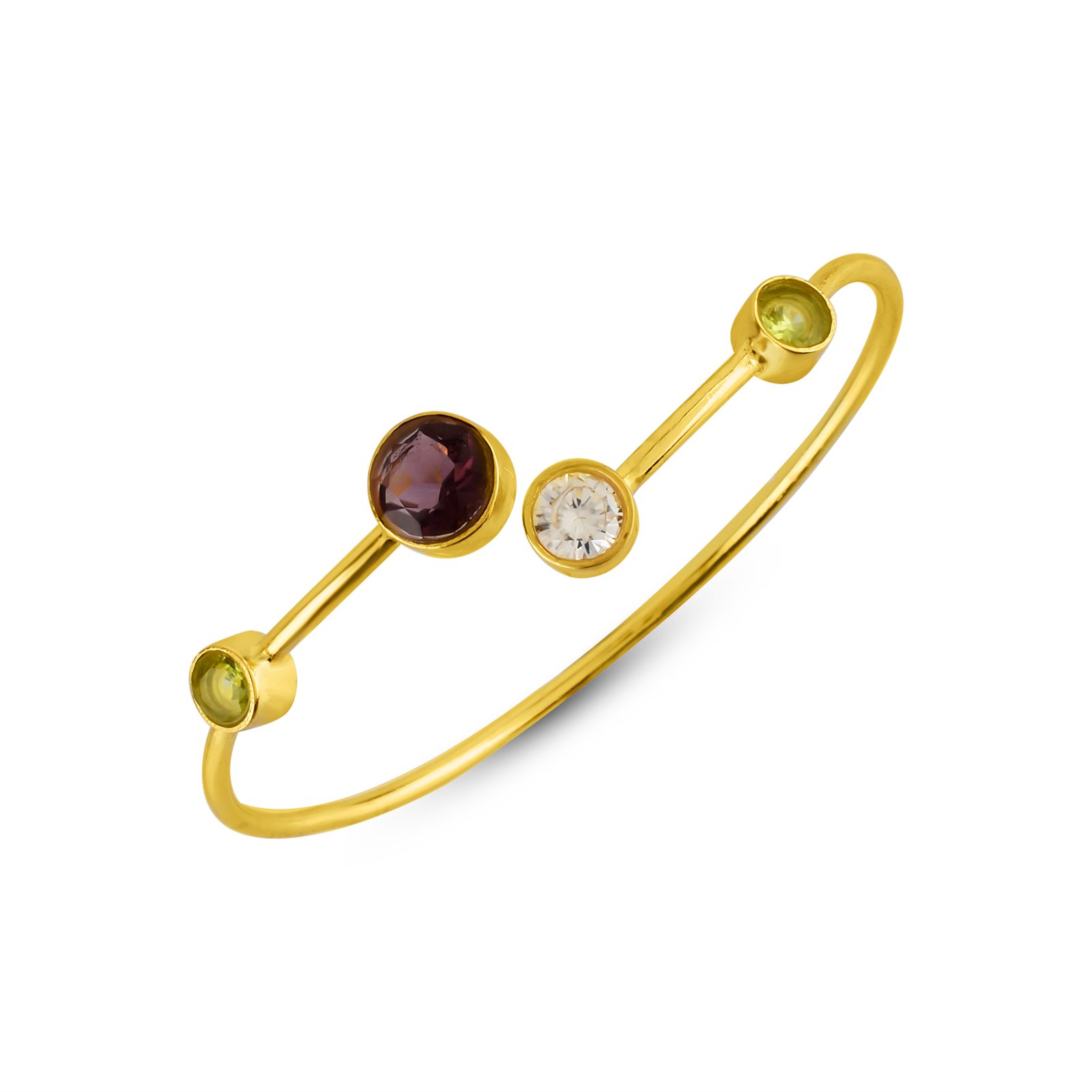 Moreover Carefully curated, this bangle features a collection of smooth pebble stones delicately arranged around a durable metal frame.