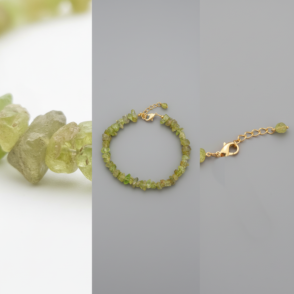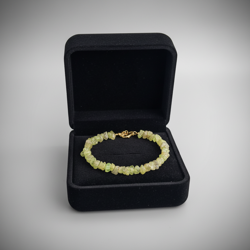 Elegant Peridot gemstone bracelet designed with natural green chip stones that create a fresh, earthy, and minimal look. Perfect for daily wear, layering with other bracelets, or adding a subtle pop of color to both casual and festive outfits. Its lightweight and comfortable design makes it ideal for all-day use.