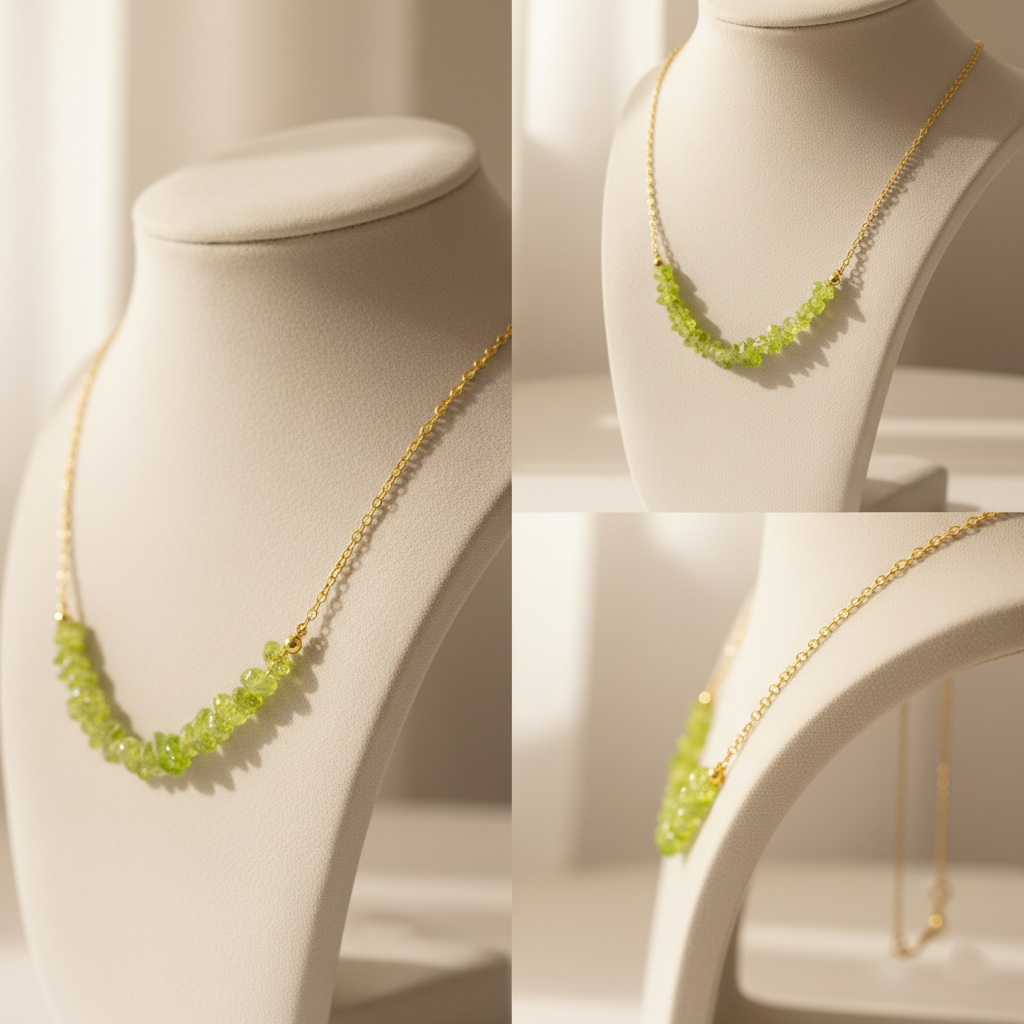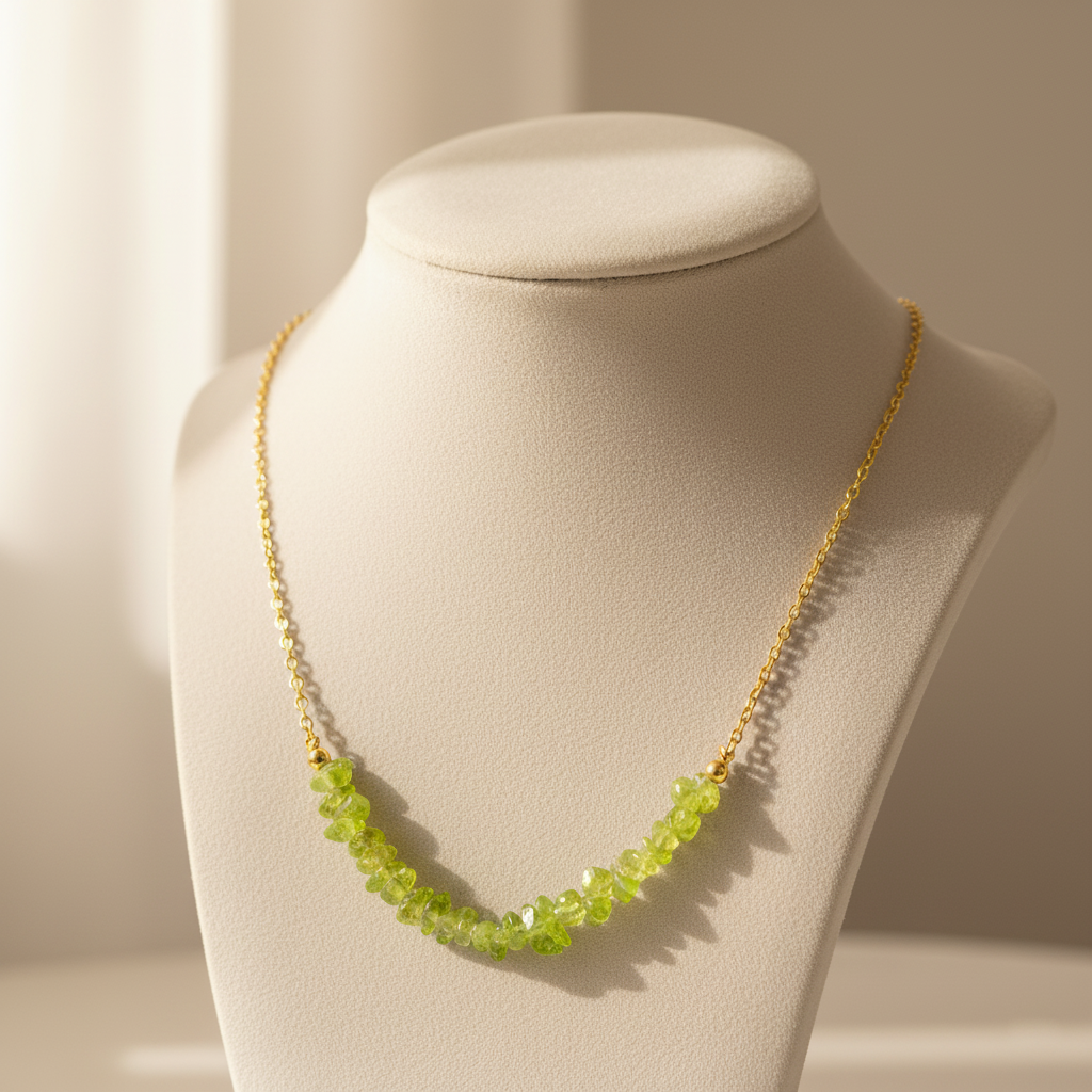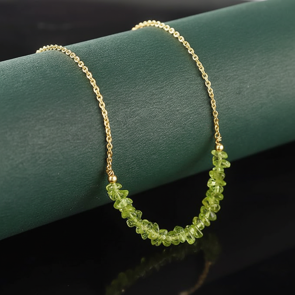 Peridot Chip Bar Necklace 18K Gold Plated August Birthstone