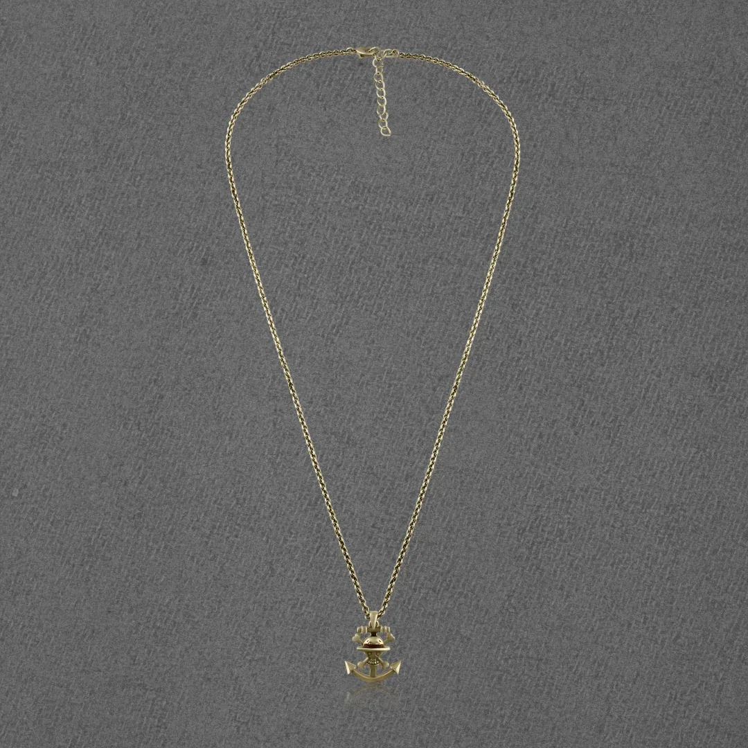 Discover adventure with the Pirate Anchor Pendant Necklace, meticulously crafted from high- Export quality Brass. This captivating pendant features an intricately designed anchor, symbolizing strength and stability. The anchor design showcases coiled rope details that enhance its nautical charm, while subtle pirate motifs add a touch of swashbuckling flair.